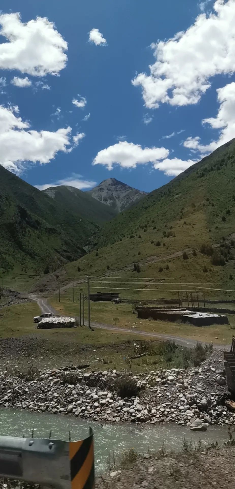 我们自驾队15个人,两部车。从那曲回程的选择各有倾向。有几位想走青藏北线,想看可可西里无人区,亲身体验向往的唐古拉山口,昆仑山口。另一部分想体验一段川藏北317线。这里自然风景优美,尤其人文内容丰富多彩。为充分满足各自的愿心,两部车分了两组,约好3天后在青海共和县会合。疫情期间尽量避免进入西宁等大城市。昨晚午夜到了索县,黑古隆冬加疲惫没什么感觉。早晨8点从县城驰出,才发现索县原来很美。当地的口号是"藏北极地,生态索县"。317国道迤逦而行,左右两旁是圆顶大山,肥美的牧场大批的牦牛群。旁边有条卡曲小河,清澈流淌。举国上下到处喊生态。那曲市的生态可不一般,它是中华民族的生命线。长江,怒江,澜沧江等三江的水源都在这里涵养,然后水滴成溪,成河,成大流。那曲有"中华水塔"之称,真不是吹。