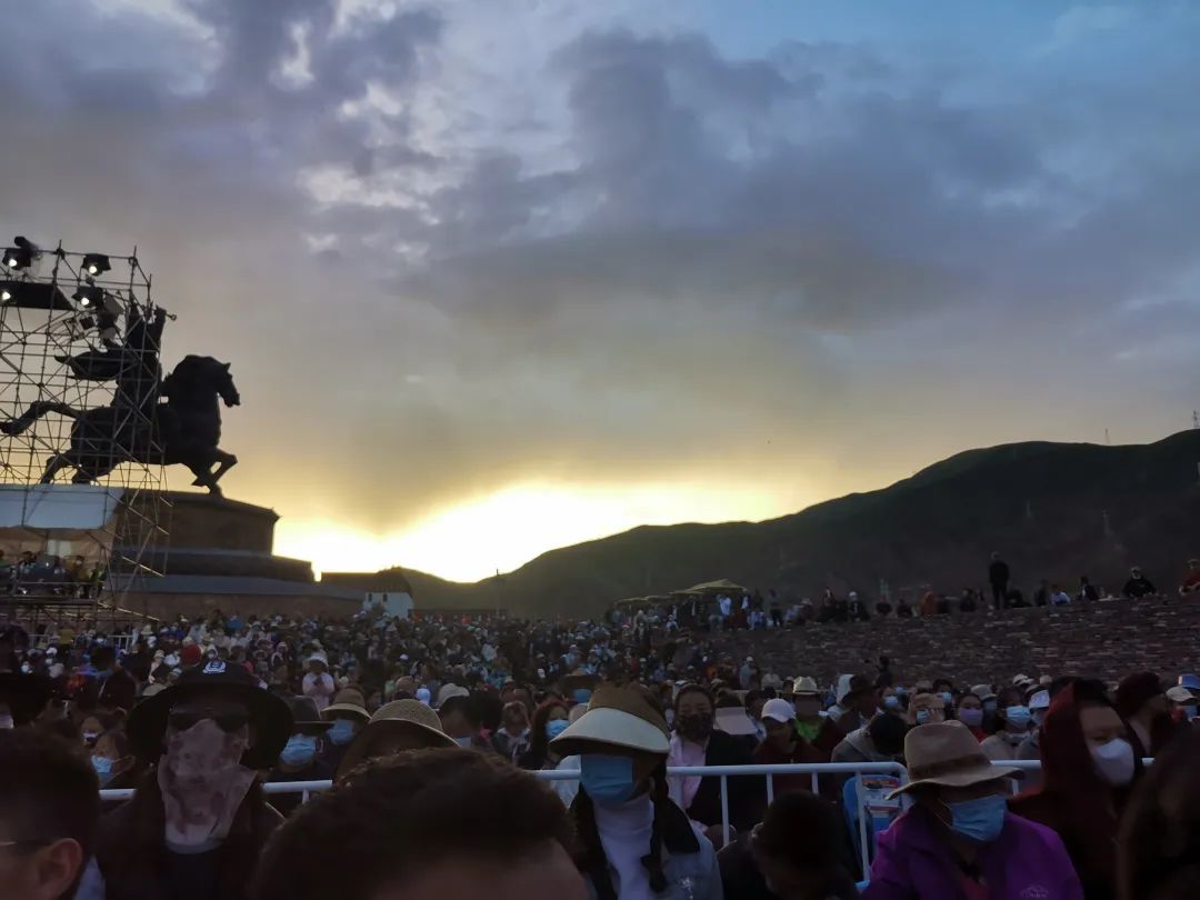 1300多年前,玉树市有条"唐蕃古道",相传是一条重要的陆上丝绸之路。傍晚在玉树住宿的宾馆,还恰巧就在"茶马古道巷"一旁。复古追忆,晚饭后特地蹓了一遭。文成公主嫁给松赞干布来藏,就是走的唐蕃古道。她喜欢玉树这个地方,特地多住了几天。她到拉萨后与松赞干布做了许多大事情,为汉藏的安定与社会进步做出了贡献,并赢得了藏民的普遍爱戴。她去世后,玉树的百姓怀念她,就在附近的摩崖石刻了文成公主的雕像,建了文成公主庙。为了世世代代的持续守护,特在山口建了"禅古寺"。"文成公主"文化,已是玉树市最重要的一张历史文化名片。碰早不如碰巧。到了玉树市区,人流车流如织,还有许多警察在维持秩序。正赶上玉树举行"大美青海,江源玉树,首届玉树生态旅游节"开幕。文艺表演,车队方阵。晚上还有大型文艺晚会。气派不小,青海省,中央电视台的主持人都有亮相。夜色阑珊,还举办了特色产品展会。最吊打本人认知的是玉树的城市之美。一个偏远的小城市,竟然如此的华丽精致。文化气息扑面。在文艺晚会的广场,一座"格萨尔王"的大型铜质雕塑,引的我注目许久不想离去。下午看过,傍晚再次驻足瞻仰。