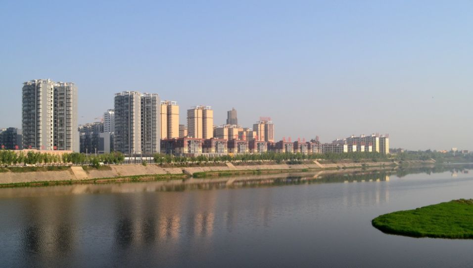 两岸楼阁拔地起,昌盛,小康福祉梦初圆。