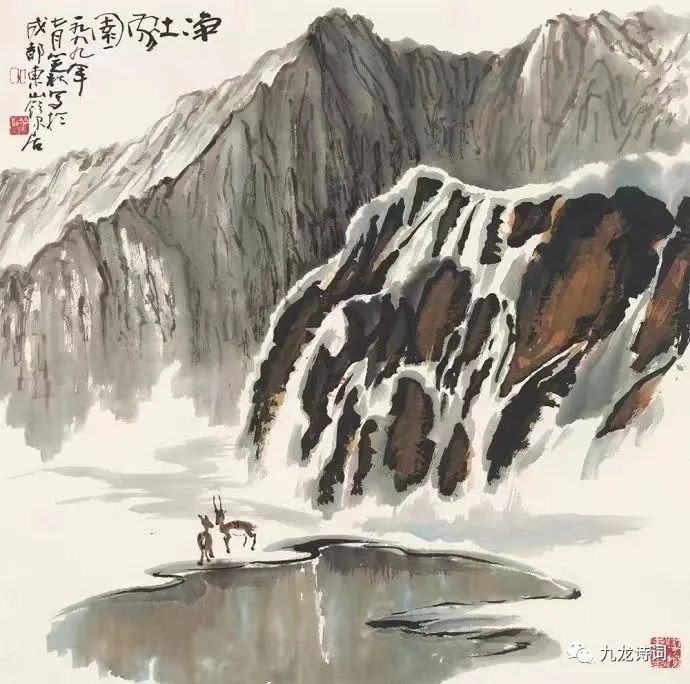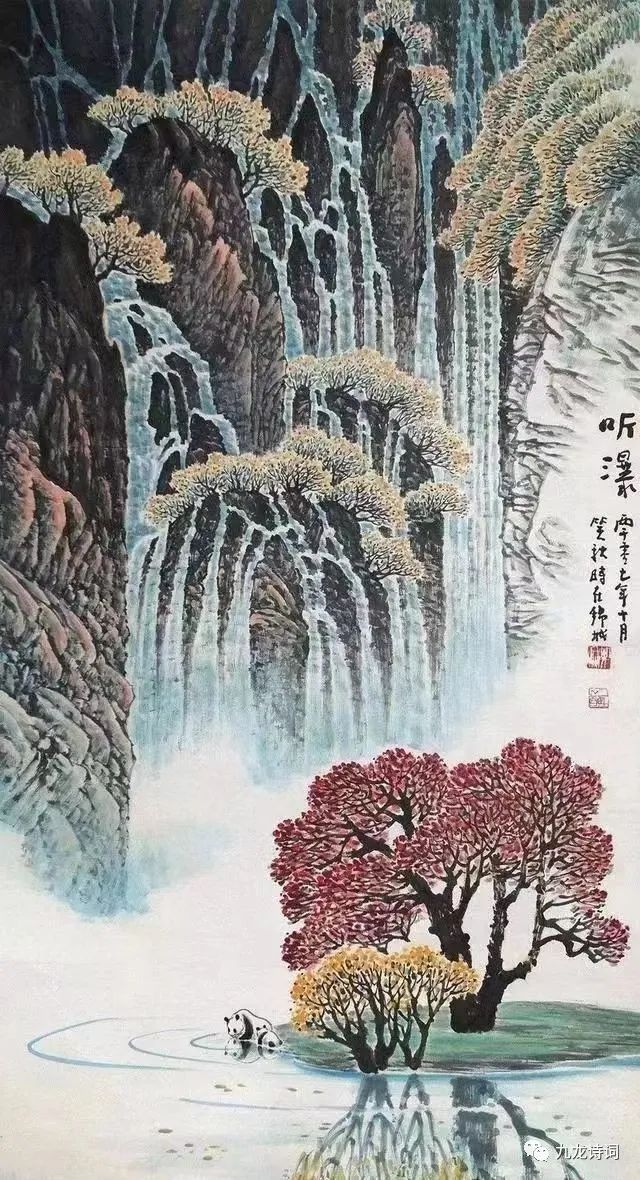 两幅现代画家的作品《听瀑》和《净土人家》让诗人们感受别样风情,写出醉美诗 篇 。
