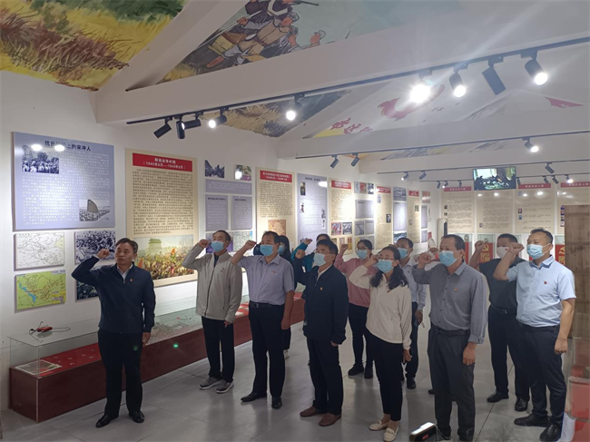 王红卫书记一行首先来到宋冲革命村史馆,全方位参观了宋冲革命村史馆室内、室外两个展区,聆听了讲解员全程讲解,并重温了入党誓词。通过了解宋冲村建设革命村史馆的目的、意义,以及宋冲村人在大革命时期、抗日战争时期、解放战争时期等为新中国的成立所做的贡献,参观人员无不为宋冲村人的那种积极向上爱学习、默默奉献不求功的精神所感染。