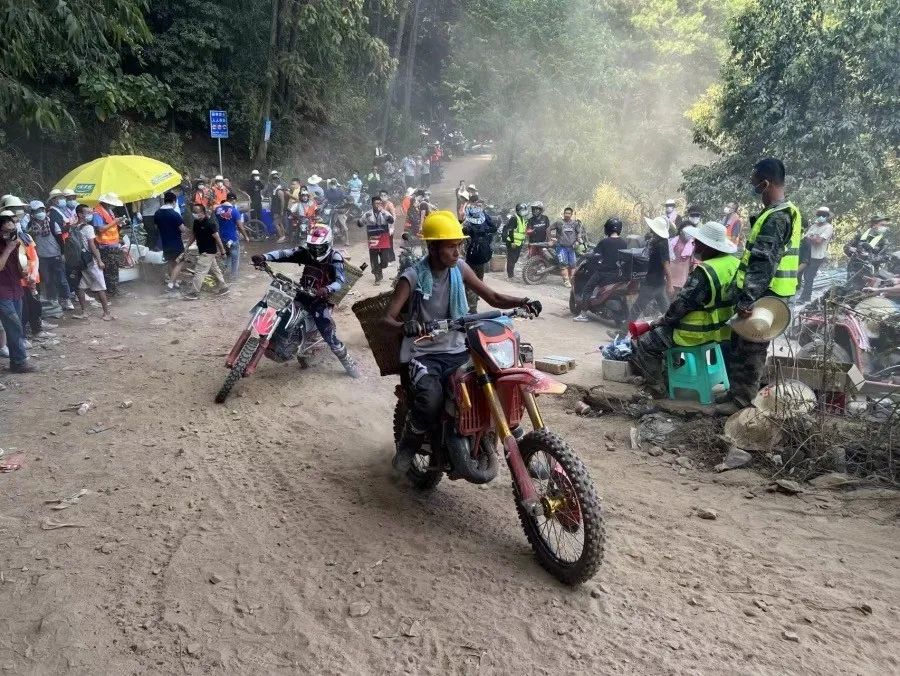 山地摩托车运送消防员进山