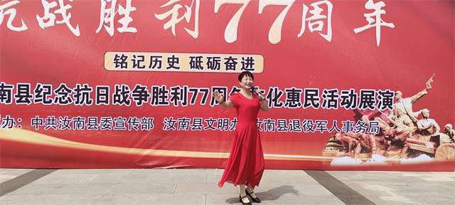 为纪念中国人民抗日战争胜利77周年,9月3日上午,由中共汝南县委宣传部、汝南县文明办、汝南县退役军人事务局主办的汝南县纪念抗日战争胜利77周年文化惠民展演活动在天中山广场举行。