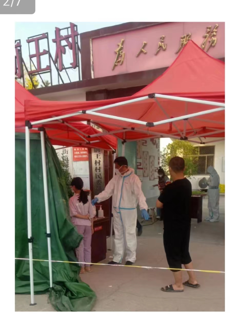 关键时刻显担当,“疫”线指导出实招。二十里铺街道朱营村第一书记郭峰迅速协助村干部组建了一支由老党员、公益岗人员和村民志愿者等组成的30余人的红色先锋突击队,全力做好部署排查、卫生消杀和应急保障等工作。南张街道第一书记服务队因部分帮扶村被临时管控无法进入,于是向街道主动请缨,火速选定13名队员援助防疫任务较重的西刘社区,协助做好卡点值班、卫生消杀和宣传劝导工作,提升村民防范意识,消除恐惧心理。由于值班卡点和核酸测点距离较远,安居街道张天楼村第一书记孙建与村书记提前做好任务分工,确保每天的值班值守和全员核酸检测实现“双到位”“双保险”,守护一方百姓平安。