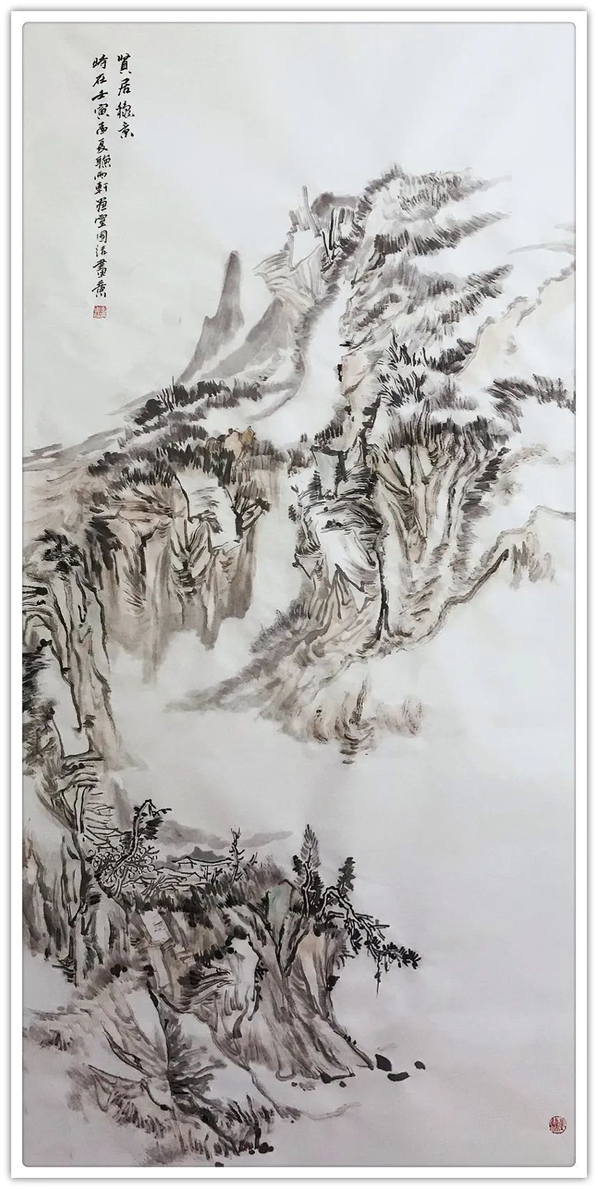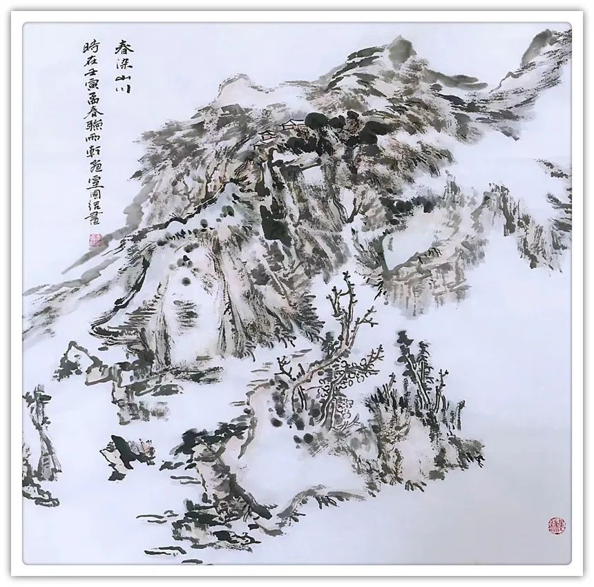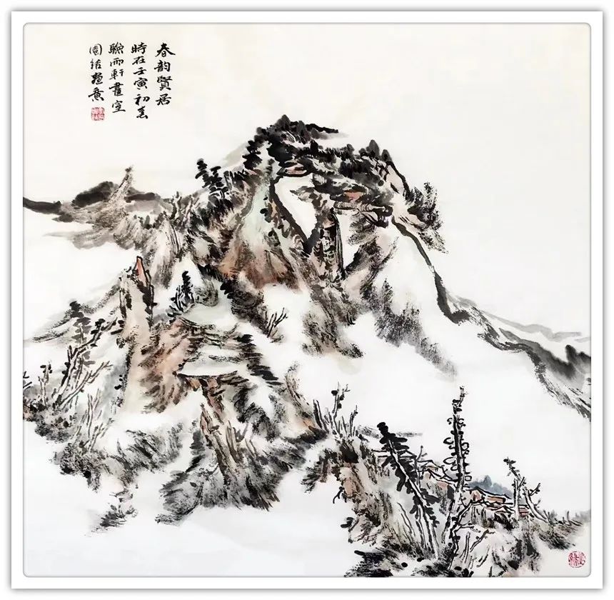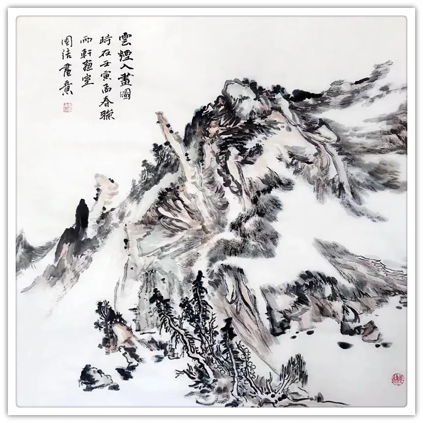 点评:团结,河间人,是我1986年的学生,清华大学美术学院理论与创作高级研修班班主任,自幼酷爱绘画且天赋异禀,为人处事诚实、低调、内敛且心性温润细腻不善言辞,偶见波澜。虽源于天性使然也是多年诗文、书画的滋养,如果说文人画崇尚慢”、“静”、“淡”的自然从容与诗情画意的生活态度,这也恰恰是团结的人生状态。近年来团结的山水画有了质的变化,畫之氣息最為難得是高古、恬淡的書卷氣。不做作、無矯情、坦蕩、中正、文質彬彬。 画之气格最忌“俗”能脫俗便是奇,作意尚奇者不為奇而為異,不合污便是清,絕俗求清者,不為清而為激。今人用心皆在有笔墨处,古圣先贤用心皆在无笔墨处,团结山水践行古人于笔墨用心之力,深知入古愈深出古愈新的道理,勤思考,守静笃不慕铅华,寓繁于简,草木烟云,千崖万壑在他笔下焕发无限生机,这和他的勤奋努力分不开的,团结以积圭步之行必达千里之地,看,他正乘着一缕朝阳前行着……