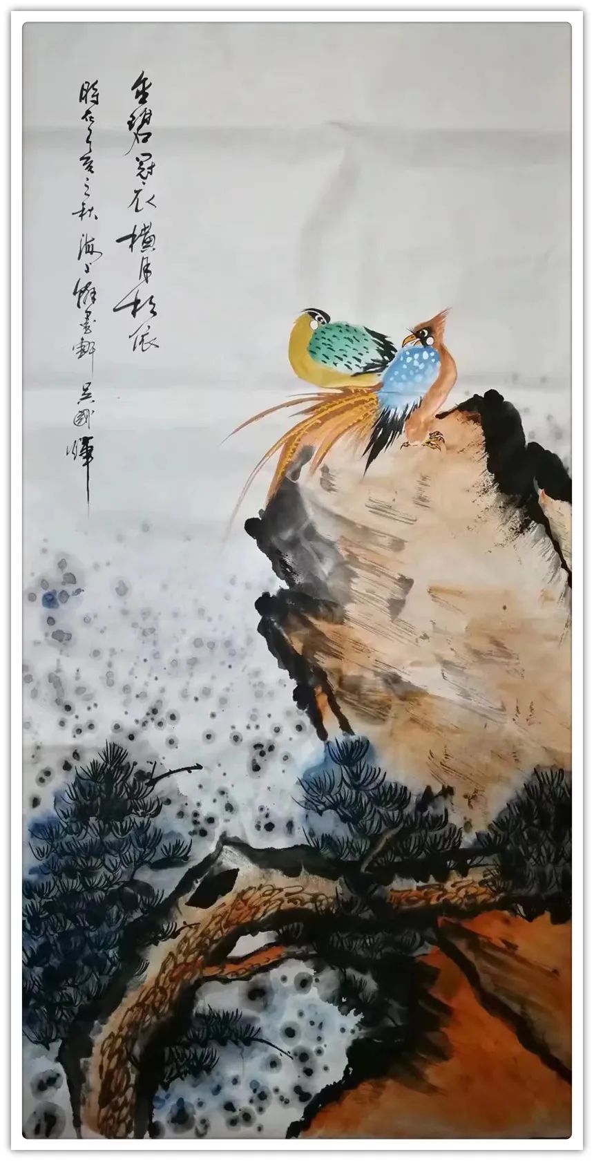 花鸟贵在意象传神,临摹之作,虽有神似,但不可拘泥,此不足为道,唯有知其然,而究其所以,笔墨方才能得神,如此即为花鸟丹青的正道法门。当代著名画家吴国辉先生,师承于多位书画大师,深谙谢赫六法与饶贤十二忌,在丹青创作上可谓是深具正道,其花鸟取法李复堂,参读陈王二贤,作品独辟蹊径,气势雍容,大俗大雅,意境深厚,其创作的花鸟作品,完全可称得上是一幅幅深得古法而又独显天香的当代艺术臻品!