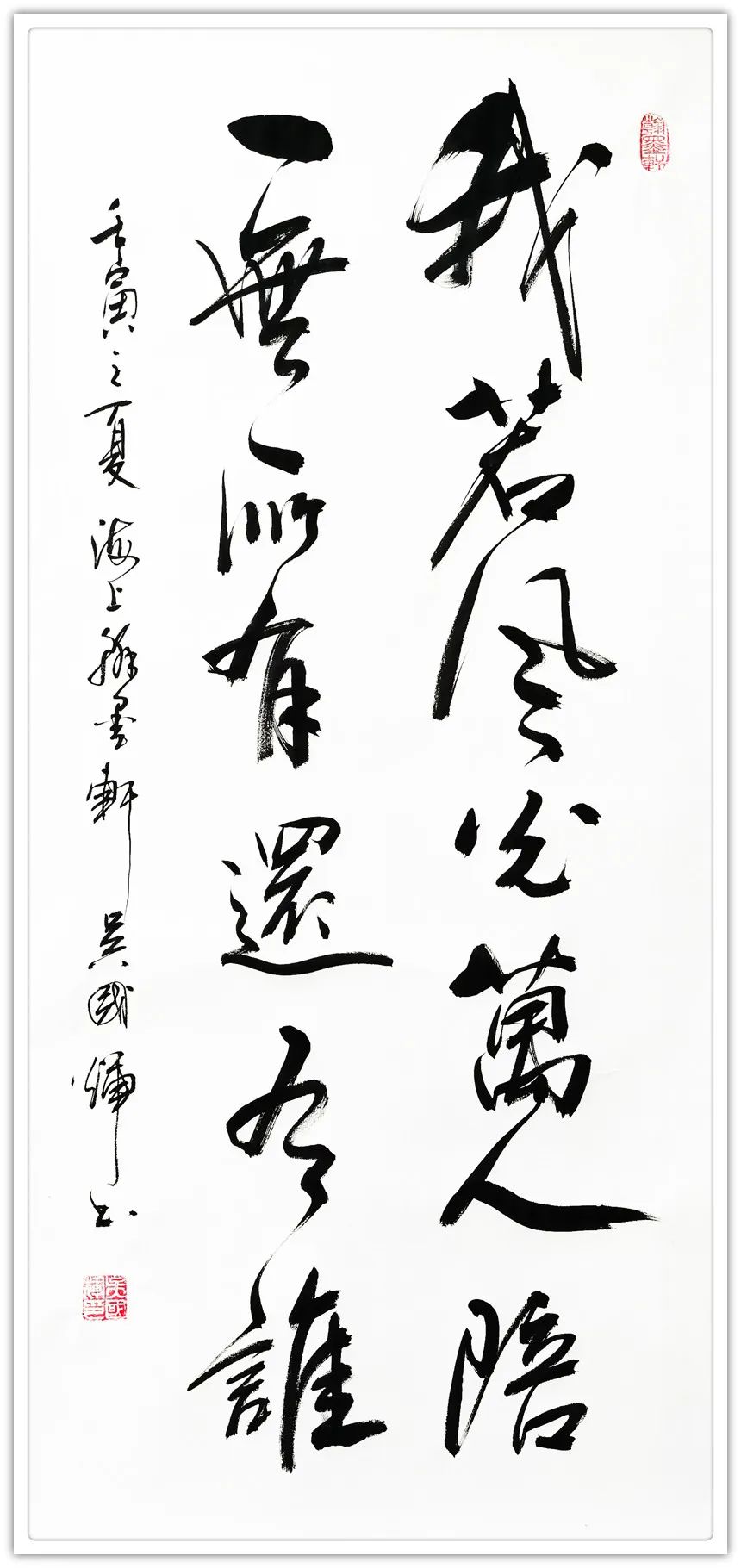 笔墨是花鸟传神的关键,笔墨精则花鸟神,反之则不然。吴国辉先生懂这个道理,在笔墨上,先生有着别人所不能及的未发之力,笔墨气势极逐浩瀚,同时为了不使笔墨因气势而失去神韵,先生又从传统笔墨中跳出,笔墨虽有其形,但从于心,走的是一条出于手而根于心的笔墨之路,通篇笔情,笔趣,笔力皆发自心源,或沉着丰腴,或飞动漫浸,先生都能很好的掌控节奏,使画中的笔墨在得之于形的同时,又能够畅达于意,如此作品含蓄隽永,悠远静态的意趣便自然而然地呈现出来了,能达此笔墨境界,必是有着数十年的画功大家,而实非凡夫俗笔,望而生畏之辈能为之。
