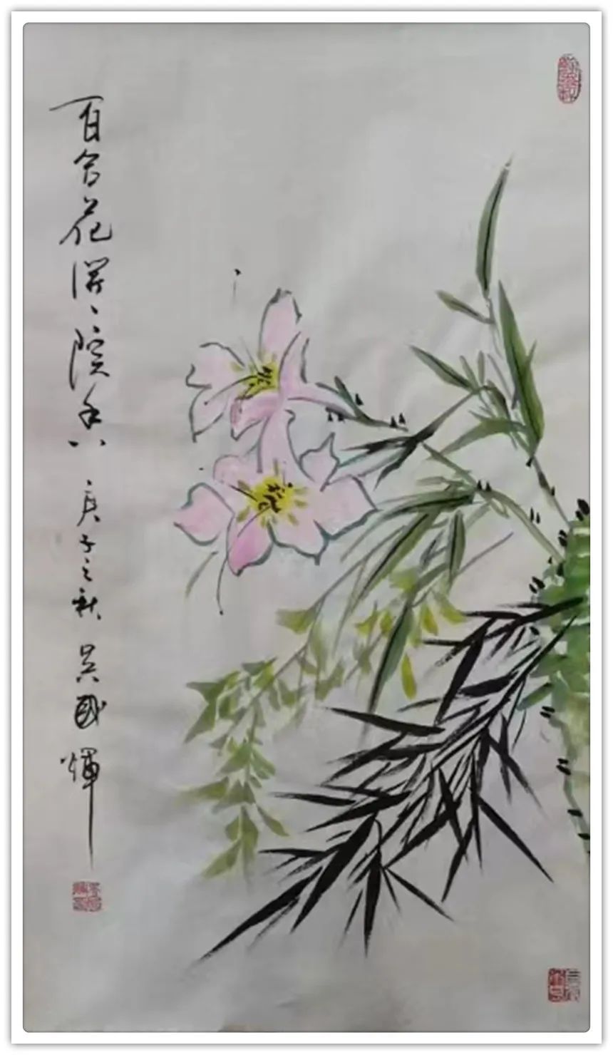 吴国辉,国家一级美术师,中国书画名家库入库书画家,中国当代书画名家,中央电视台水墨丹青书画院院士,世界文化艺术联合会亚洲美协会员,中国书画家联谊会会员,1955年12月生,上海市松江区人。八岁习书画,毕业于中国书画函授大学,江苏无锡书法艺术专科学校,上海东方艺术学校毕业。曾获全国第六届规范汉字书法大赛三等奖。书法作品荣获全国首届网络书画大赛二等奖。师承中国多位书画大家学习书画,现为:中国书画家协会理事;中国国际工艺美术师协会会员;中国国际现代艺术研究中心高级会员,中美杰出华人艺术家;中国翰林院书画家协会会员;中国收藏协会特聘书画家;中国翰林院艺术家协会会员;香港国际华人书画家协会会员;中国翰林书画院院士;香港书画艺术中心特约画家;香港华人书画美术专修学院院士;香港国际华人书画家协会上海分会培训中心特约教授。吴国辉老师作品多次在全国、省、市的美展中参展并获奖,部分作品被艺术博物馆收藏;作品展销俄罗斯,朝鲜,美国、法国、英国、德国、澳大利亚、巴基斯坦,韩国,日本,新加坡、马来西亚等国家和香港,澳门,台湾等地区。2013年与2014年吴国辉老师作品分别被香港举办的“中国百强书画家评选获(最具收藏书画家称号),(中国百强书画家)称号。2016年参加巴基斯坦书画交流展,2017年参加庆祝香港回归20周年诗书画文化节暨颁奖庆典活动,2017年中国翰林院书画名家海峡两岸交流;2018年参加 吴文化高峰论坛暨腾蛟杯国际书画联谊展,2018第二届中国翰林院书画家协会海峡两岸交流;2018年“大爱新疆”全国公益书画展;2019年纪念中俄建交70周年走进延边俄罗斯朝鲜;2019年中国书画名家纪念新马建交45周年暨青花瓷书画联展,2019年参加东海扬波,潮湧玉环,第四届吴文化高峰论坛书画邀请展……吴国辉老师为人谦和,气质优雅,善结人缘,傲视丹青,一代大师风范。“弹指惊风雷,挥毫动风云”,吴国辉老师在多年深耕绘画的艺术生涯中,博采众长,钻研古法又不拘泥于古,始终坚持走自己的艺术之路!