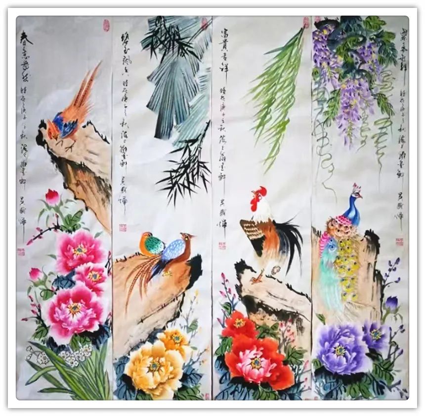 绿琼枝华诗情在,惠风拂花闪彩霞。能在花鸟画方面达到如此高的水平,奉献出如此令人惊艳的艺术作品,应该归于先生的悟性和灵才之气,先生全身心继承了传统花鸟的典范,丹青百家皆被先生深谙十分,其作品淋漓酣畅,画风大气秀丽,可以说是把花鸟的情态与精髓展现到了极致,欣赏其作时,总是不免令人感受到一股笔所未到韵已纯,紫霄缨络垂彩屏的艺术风趣,丹青大家,造极艺巅!