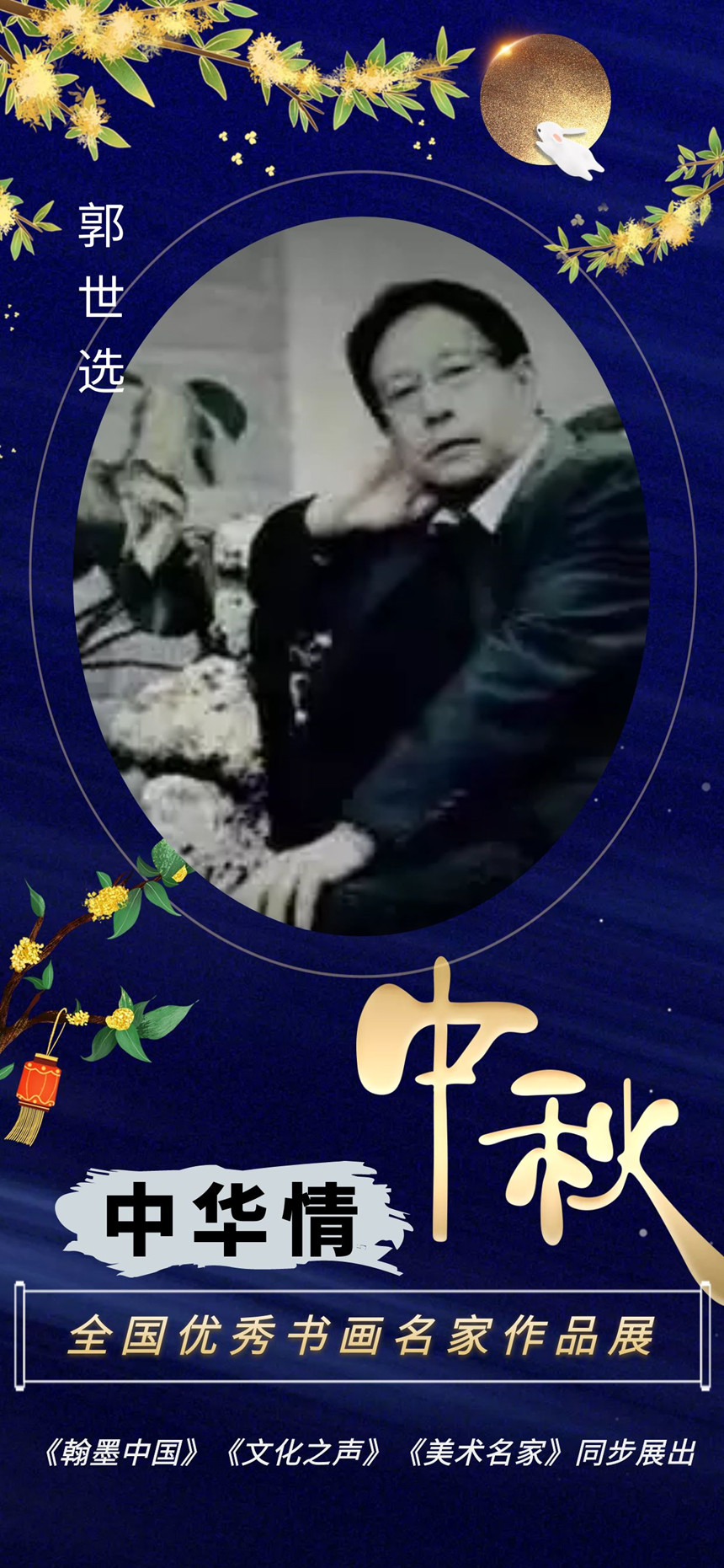 郭世选:男,笔名:石轩,本科学历毕业于西安音乐学院,职称:副研究员,“陕西省美术家协会”、“中国现代书画家沙龙”、“延安美术家”、“音乐家协会”、“于右任书法研究会”会员、现在洛川县文化馆从事群众文化辅导工作。 书画作品和论文先后在“爱克华华人书法大赛”、 《当代陕西》、《文化艺术报》、《中国书画报》、上海《书与画》、湖北《美术通讯》、《社会文化》、《中国美术大观》、《中国经贸杂志社》艺术栏目等报刊杂志发表和获奖。《郭世选书画》作品在百度、搜狐、网易、腾讯、优酷,凤凰新闻,艺术中国相约东奥重点推荐特邀艺术家和中华艺术家传承人物,中国美术家网、当代艺术家拍卖网等媒体进行了宣传报道。个人小传一并收录在《中外书画名人大辞典》书中。1990年参加亚运会书画展,作品《回娘家》被中国日报社收藏并以贵重礼品赠与孟加拉国大使,设计的工艺作品《裹肚》等系列作品,1992年参加中国旅游节西安会场获“金犀牛”奖。
