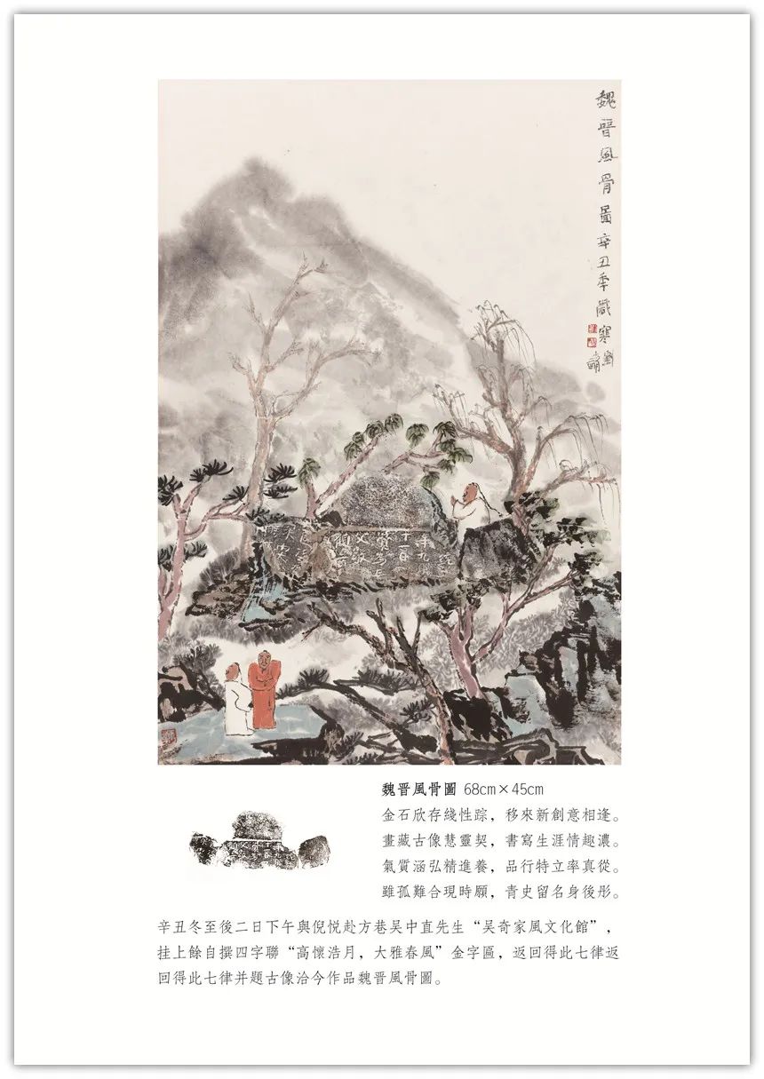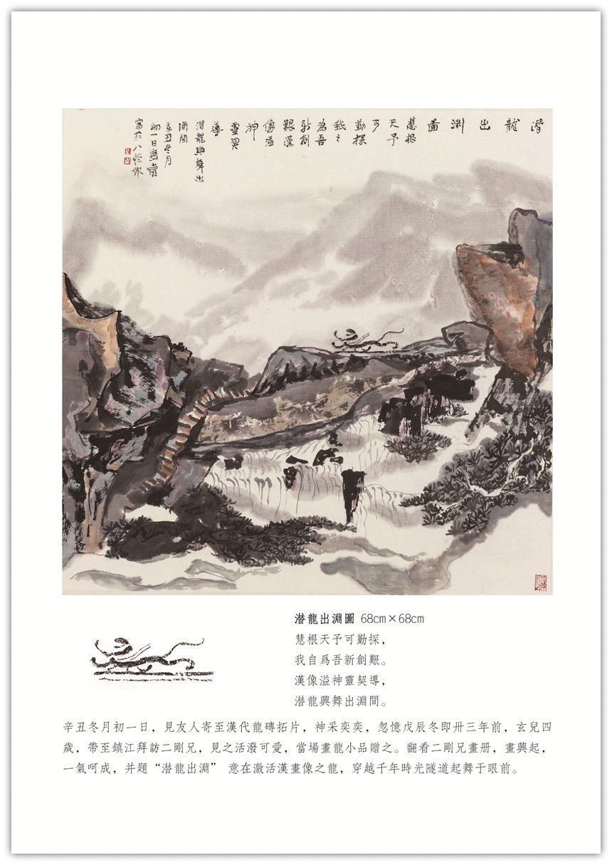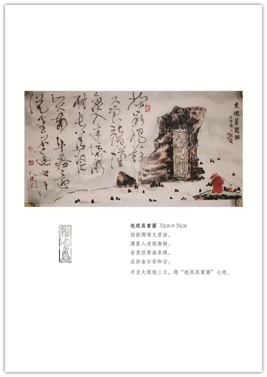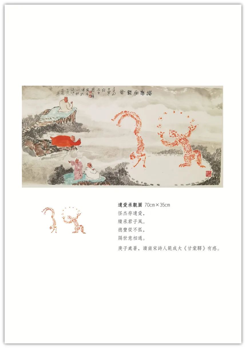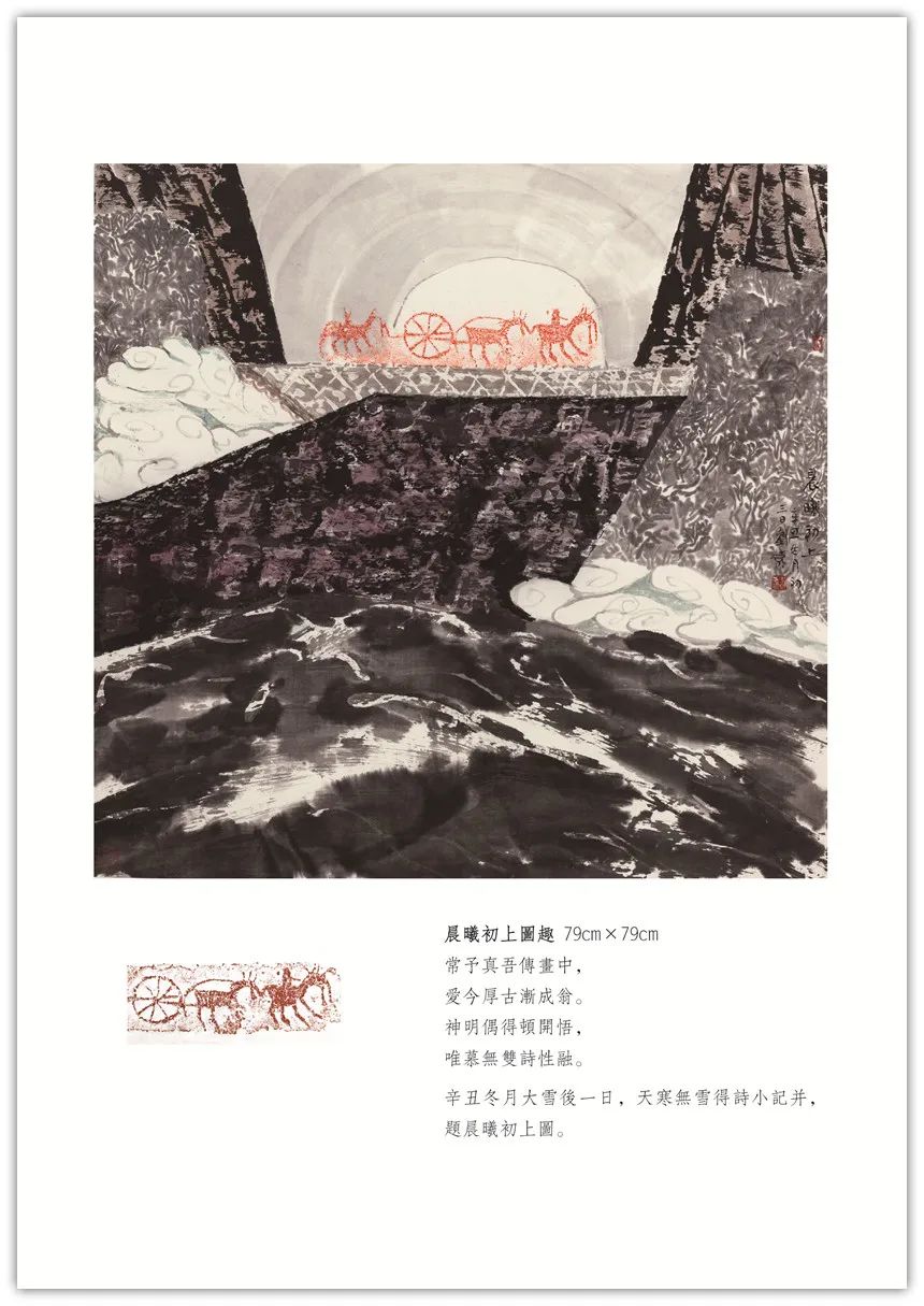 【古像洽今】系列创作始于2018年初。由秦汉以来的画像石、砖拓片(或局部)生发创意,添加上自己的诗书画印元素,旨在穿越一、二千年时空,创作出了独有的学术性、艺术性之作品,把古代文明和现代交化完美的融合在一起,交相辉映。
