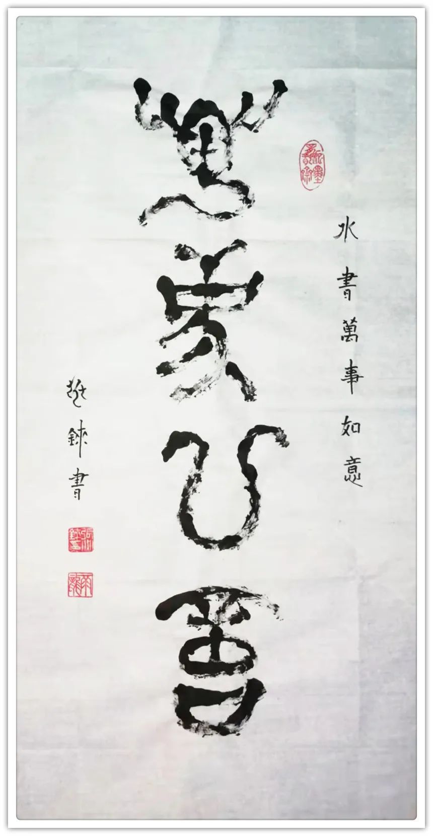 张兆铼先生水族古文字书法艺术的自性,乃是自然之性与自我之性的共生体。在化境中认识生活,以客体自然之魂为本,求人道合一。水书浓缩家国情怀 非遗传承和谐社会。