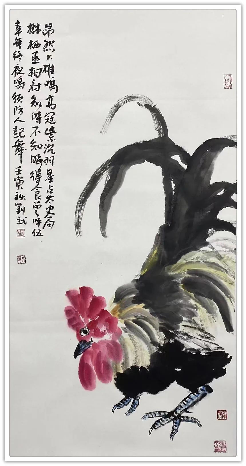 从刘武先生阔笔纵横,笔墨淋沥的写意花鸟画中,充分体现了画家对笔墨技法的充分了解与把握笔讲筋骨墨分浓淡干枯湿在写意花鸟画中 用笔率真 直抒胸臆, 就要求画家对画法 画理要有极高的掌握,运用开合之势,虚实之辩,在有限的平面上表达无限的空间,使其达到意境开阔,气势饱和,出神入画的佳境。“登山则满于山,观海则满于海”,中国传统文化主张“中和之美”,讲究中庸、含蓄、逸气、雅逸皆是诗的格调,诗言志、诗意的绘画的一种请的表达。失去了诗情也就是去了绘画的灵魂。