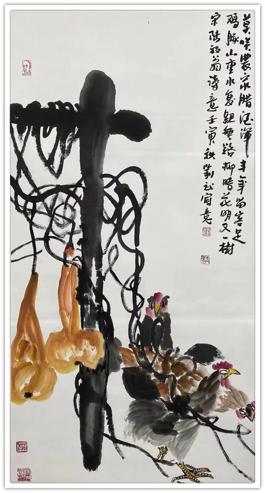 陇原大地,祖沥河畔,英才辈出,古有索靖,近有范振绪,王了望,陈少亭等书画大家,人文美境培养孕育了祖沥河岸的先民们,刘武先生就出生在祖沥河畔水泉乡的一个书香门第家庭,自幼的文化传承,加之刘武先生的勤奋好学,他的写意花鸟画有"鸟欲言,花欲语"的传统写意, "乘物以游心,欲言于自然”。,他创作的《春风香国》、《富贵花开》、《梅兰竹菊》、《春夏秋冬》作品以田园大自然风物为主要表现题材,以讴歌生命为主要内容表现手段以中国画传统为基础吸取历代绘画大家营养和大写意艺术养分,构成具有民族意识时代气息与以及鲜明个性特点的艺术风格,其风格主要表现为饱满丰厚,雅气华丽和充满律动美感。