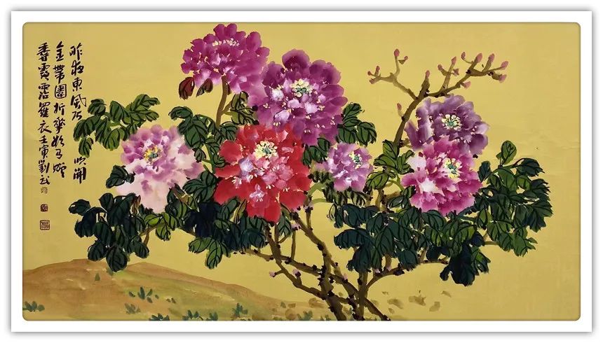 亦诗亦画。诗歌偏于表现侧重意境的表现,绘画偏于再现,侧重于形神的刻画,古代美学强调再现与表现结合,所以诗歌中也讲形神。所谓“状难言之物如在目前”绘画中亦求意境,所谓“画以境为上”,从而把意境和形神和谐地统一到了一起。“诗画一律”,说使诗与画都能兼诗情画意之美。得情景交融之妙,使二者更加完美。面对一幅优秀的中国绘画作品时,往往被画中所释放出的某种气息所感染。这种气息是诗的意境。这种意境是中国画的精华。“外师造化,中得心源”,刘武先生把”外师造化,中得心源,的绘画艺术真谛把握统一的淋漓尽致,笔下的海兰竹菊>荷塘清趣>用笔洒脱,层次清晰,布局疏爽,虚实中衬托天然姿态毫无粉饰之意,春夏秋冬四屏 和谐相应,天机妙趣,寄托胸臆于艺术形象的气质之中,达到了得意取象得意造境的境界 ,他创作的富贵牡丹图,如《春风香国》、《花开富贵》、《春韵》、《独占人间第一春》、《光耀华夏》 等作品 以凝炼灵动的笔墨,描述出博大精深的艺术内涵个性鲜明,神采飞扬,显示出其艺术功力,激清情与灵感自然流露,给人以极大的艺术享受,从多角度拆射出其馨香的品德和高洁的志向。