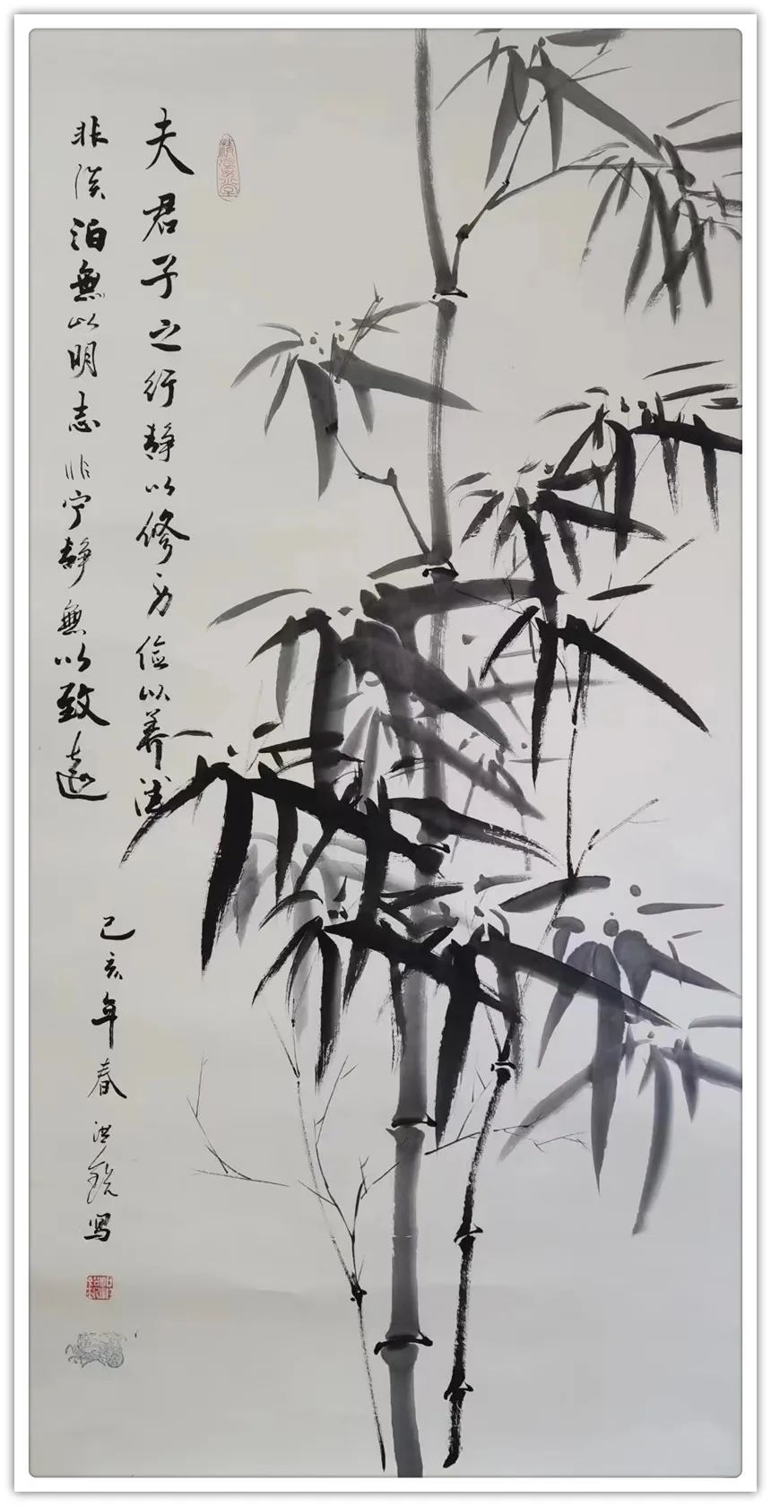 洪老师还特别爱好国画山水、花鸟,尤其喜欢郑板桥的书画兰花和竹子,经多年精心研究,如今已深有体会。