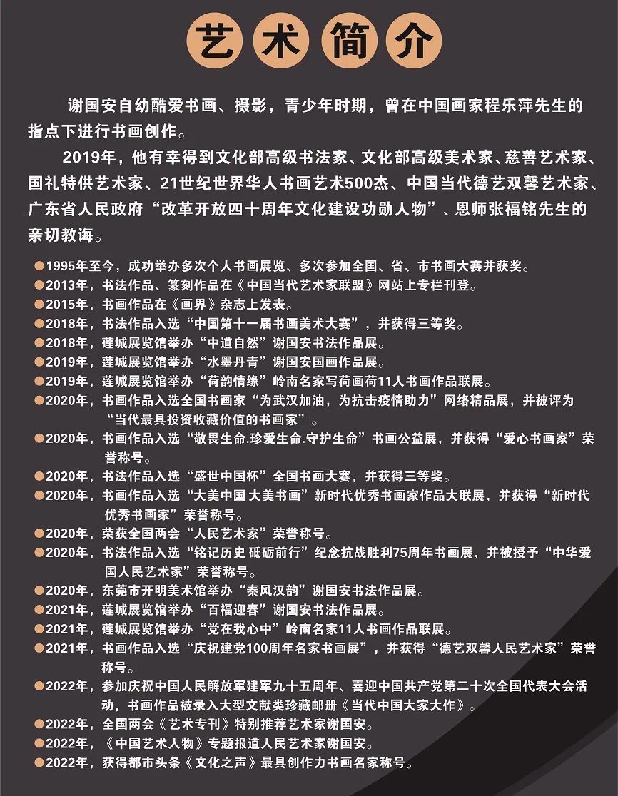 这是全国优秀书画名家倾情奉献的一场书画艺术视觉盛宴,参展作品诠释了书画家们对美好生活、对家乡、对祖国的热爱之情,呈现了中华优秀传统书画文化的魅力和生命力。