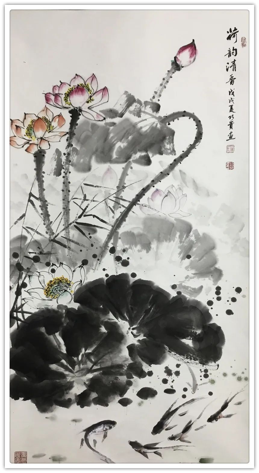 他的绘画体裁相当广泛,山水、花鸟、人物、鱼虫,无所不能及,无所不能画,都是拈来入宣纸,塑意成臻美。但是作为家学修养的传承人,必然在体裁广博的基础上,体现一门的精绝风彩!所以罗巧贵在诸体皆通的前提下,又主攻极有文化趣旨和寓意的鱼题画,成为罗派艺术的独门精绝,与齐白石画虾是同质,与徐悲鸿画马是同质,也与郑板桥画竹是同质,凡是丹青大手笔,必有服人专题!