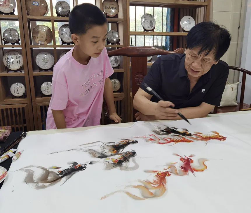 春花秋月何时了,传承家学永不休。他有画不完的鱼创作,人们则有幸得遇看不够的鱼文化,他的画笔,是为家学的传承在担当,也是为文化的丰满而助力,鱼题专享,大家风范!文化功成,源远流长!