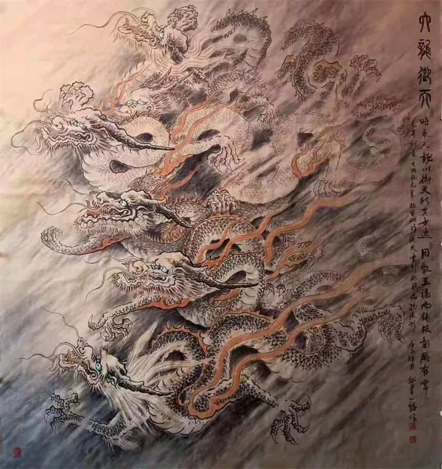 刘一骏(本名刘贵永)号铁笔一龙,1974年出生,辽宁省凤城市人,现居杭州。2009年开始专门从事龙文化研究,龙图,龙瓷的创作与探索。2015年天津杨柳青出版社出版发行《神仙御龙技法》2016年景德镇领导订制6对大型龙瓶送往北京新华社等部门。2017年创作《一骏炎黄图腾体》《一骏山石水墨体》《一骏虎头啸体》三款书法字体入选云字库。2018年完成线描《百龙图》手稿,《凤凰四百例之涅槃》手稿。2019年作品《龙凤呈祥》被市文联赠央视《喜上加喜》栏目组。2020年为黑龙江依安陶瓷博物馆创作8米x4米大型陶瓷壁画《黑龙传说》2021年为黑龙江省陶瓷产业园创作一百件高二米的龙瓷作品。2021,2022年国画龙图作品入选《众妙之门》当代中国画名家学术邀请展。2022年二月二在齐齐哈尔市鹤乡龙瓷馆举办龙瓷艺术个展。近十年来在专业书籍,传统图案书籍,杂志上发表过三百余幅龙图作品。有数十幅大型龙画,龙瓷作品被北京,海外,大型企业及收藏家收藏。相关龙的文章《中华龙之历史演变》《我们为什么是龙的传人》《中华龙的精神内涵与现实意义》等在网络深受热议。每年二月二以刘一骏龙画为主要图案的共众号宣传多达数百上千万条。大红袍系列之刘一骏卷,书画瓷三位一体正在编辑排版中。