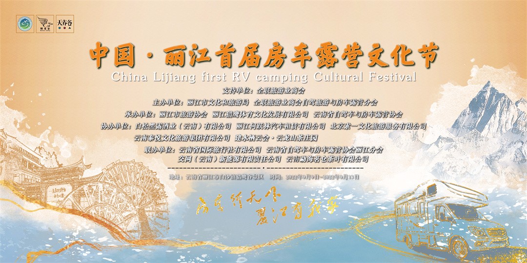主办单位:丽江市文化和旅游局 全联旅游业商会自驾旅游与房车露营分会 承办单位:丽江猎鹰体育文化发展有限公司 云南省自驾车与房车露营协会 协办单位:玉龙县人民政府 白松黑露酒业(云南)有限公司 丽江何跃林汽车租赁有限公司 北京索一文化旅游服务有限公司 云南泰悦文化旅游集团有限公司 建水栖云会·云龙山茶庄园联办单位:云南省国际旅行社有限公司 云南省自驾车与房车露营协会丽江分会 交网(云南)新能源有限责任公司 云南勐海茗仓茶叶有限公司
