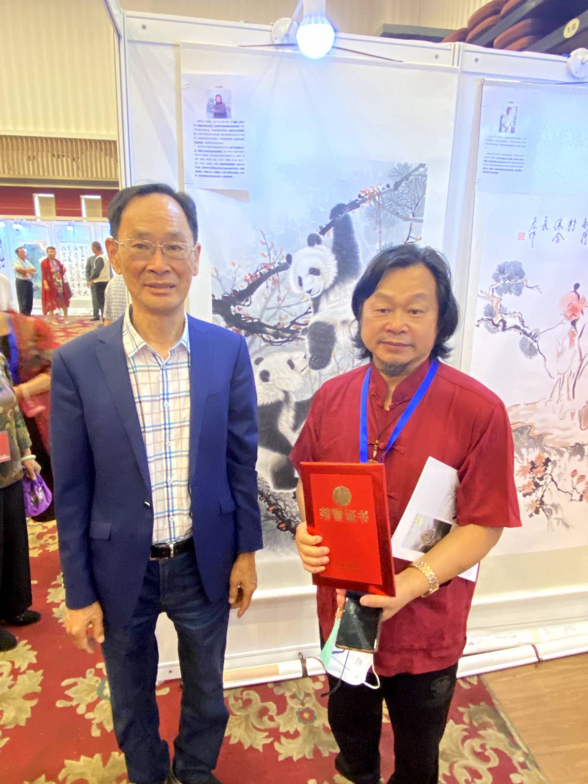 由中国文化艺术人才库组织的“翰墨传情·盛世收藏”大型书画精英作品展于9月3日在北京国家新媒体产业基地隆重举行,画家卢承豪受邀参展,文化部原副部长、国家博物馆首任馆长潘震宙亲切接见了他并为其颁奖。