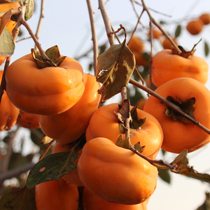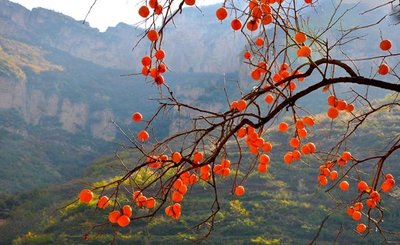 首山高岭摇摇柿,日照彤彤。满树灯笼。笑靥含羞绽俏容。