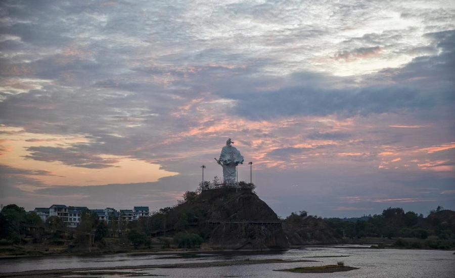烟波嘉陵江,岸柳飞丝长。鱼山峭崖晴,落日西坡上。