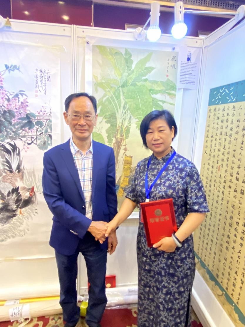 由中国文化艺术人才库组织的“翰墨传情·盛世收藏”大型书画精英作品展于9月3日在北京隆重举行,画家李蕊受邀参展,文化部原副部长、国家博物馆首任馆长潘震宙亲切接见并为其颁奖。