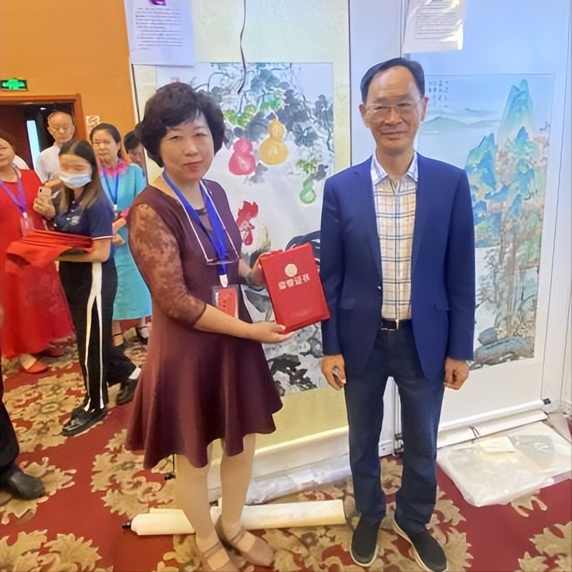 潘震宙部长(右)为画家谢文婷颁奖