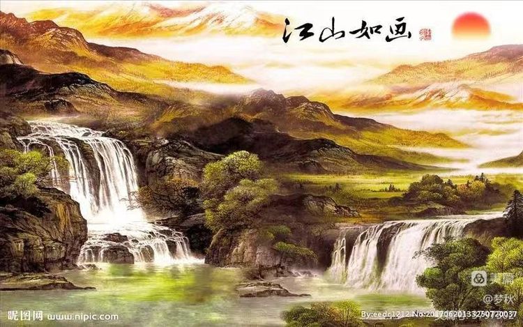 山河壮丽晴空荡,和谐家旺民心向,安居乐业万年昌,同圆梦想。