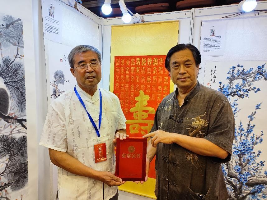 9月3日,由中国文化艺术人才库组织的“翰墨传情·盛世收藏”大型书画精英作品展在北京隆重举行,中央国家机关美协主席、中央国家机关书协副主席王阔海到场祝贺。书法家刘治国受邀参展,王阔海主席与之亲切交流,并对其作品予以高度评价。