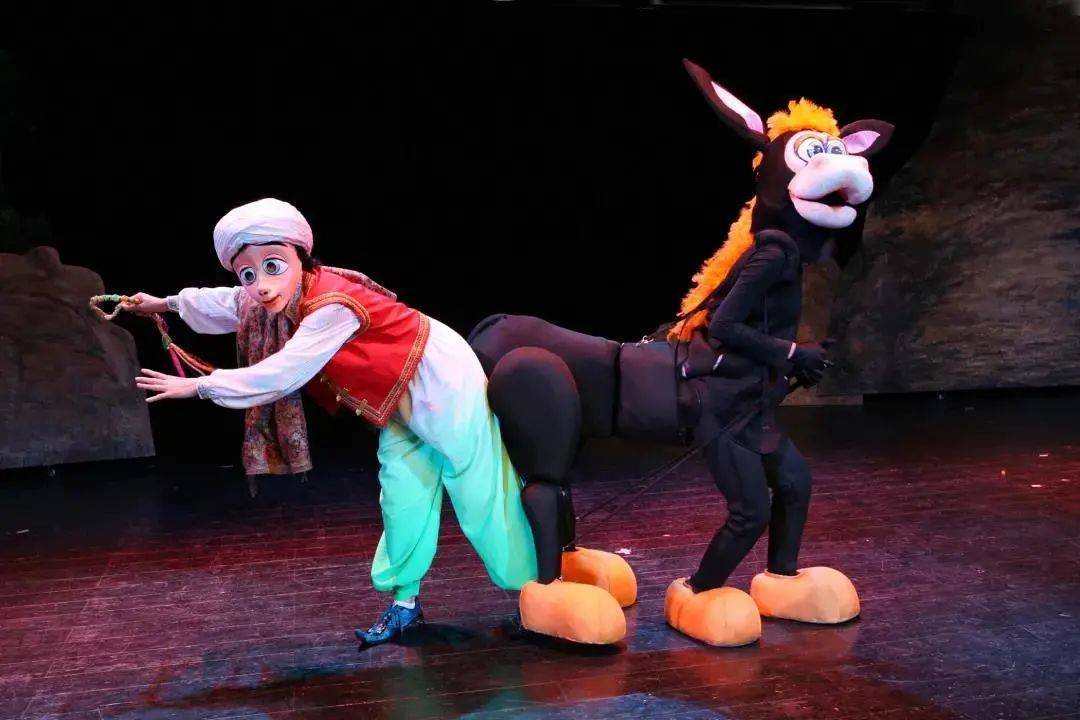 大型卡通人偶剧《阿里巴巴》采用人偶造型和木偶同台演出形式,随着剧情的需要时而是人偶造型演绎人物,时而是纯粹的木偶表演。