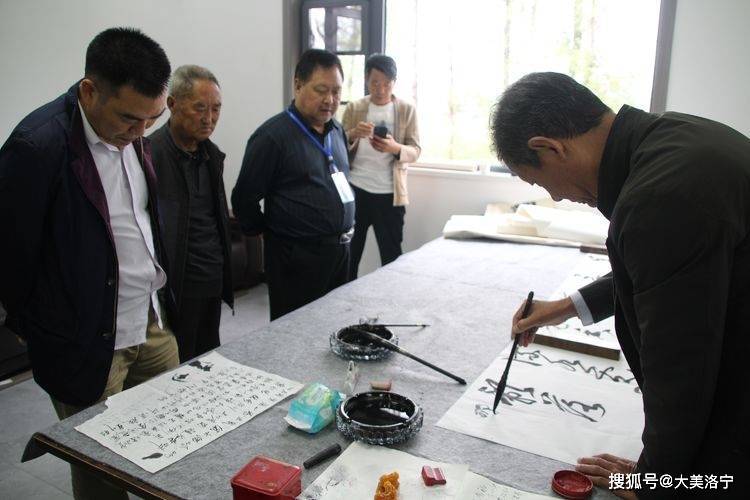 笔墨丹青绘画卷,无声诗里颂千秋。应景阳镇西山底村书法名家朱逢午邀请,10月2日,洛宁县农民书画院一行五人,在院长王应山的带领下到他家中举办书法笔会,受到了其热情的接待,有了宾至如归的温馨感觉。副院长吴松安、书法家张光民、师生华、杨延杰、李大成、刘耀生、亢书章、 韩虎周及西山底村书法爱好者20余人参加此次活动。