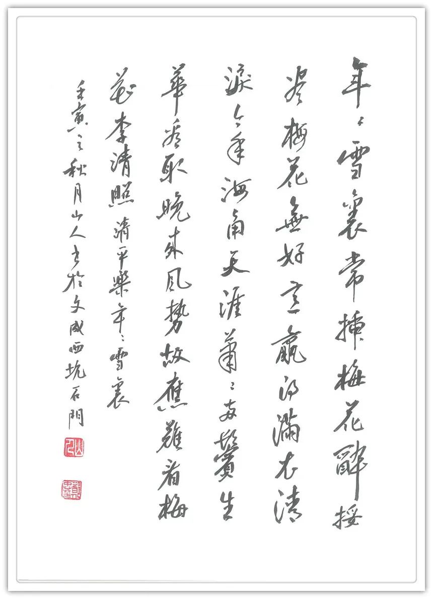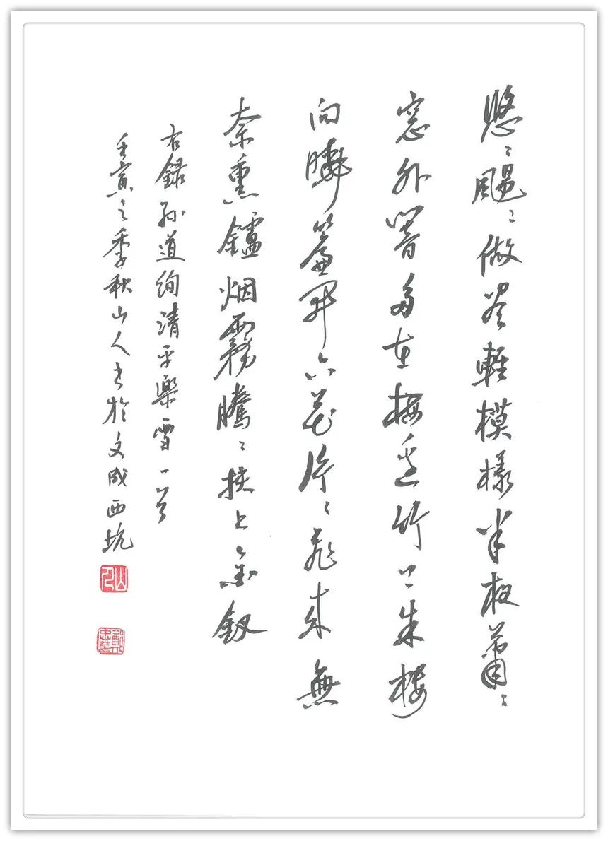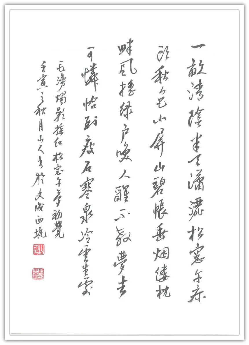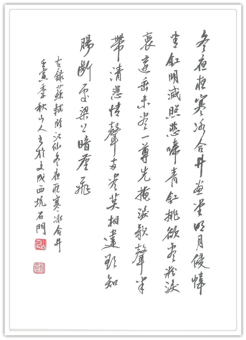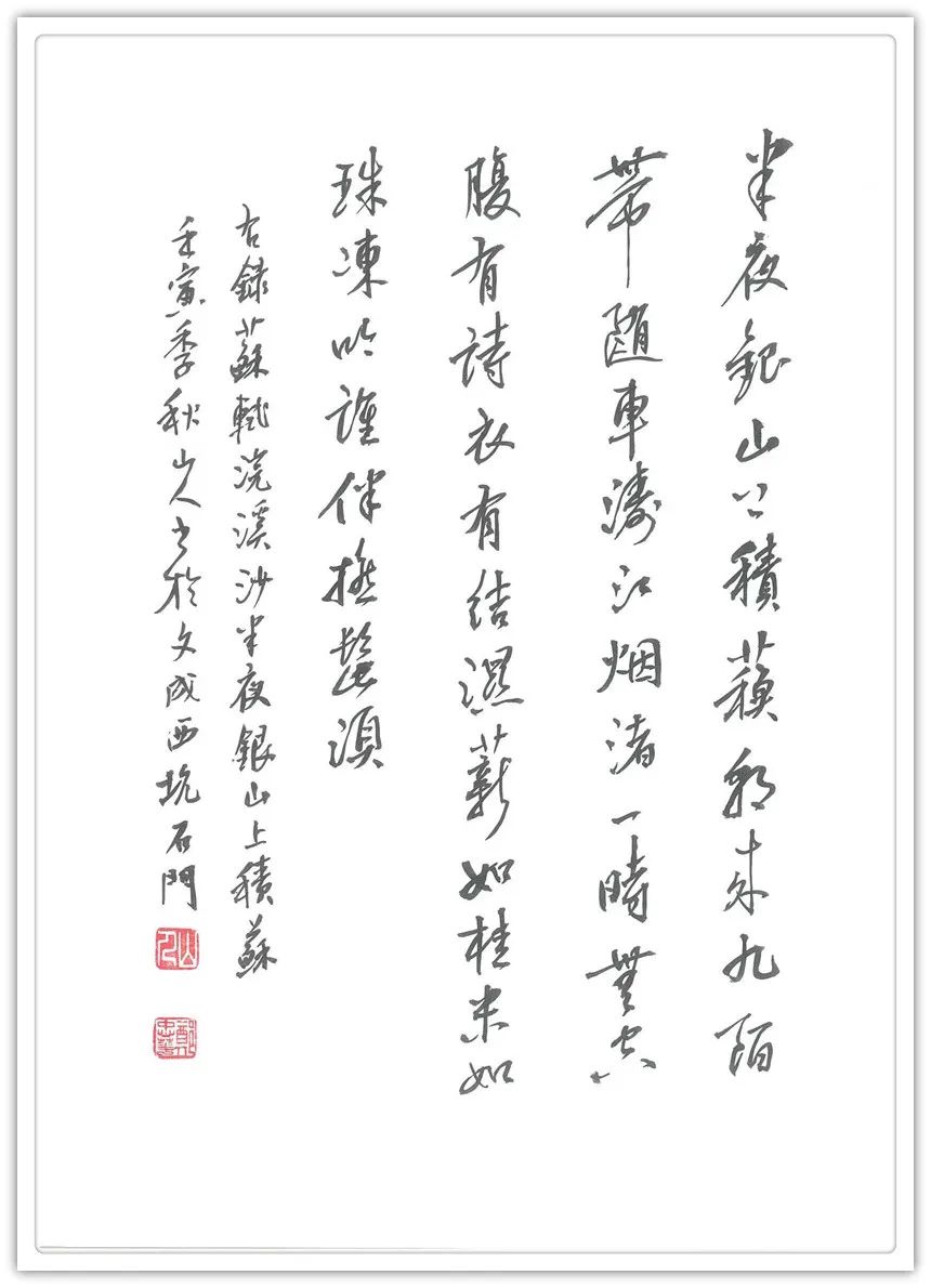 文人翰墨,天质自然。书法有法,法在碑帖。书法无法,法在心源。先生的书法是有法的正宗,亦是无法的自然。依靠文人修养的无量加持,可以激楚浪以成纹!不但笔法精湛,而且笔势多变,以力写书法,也循气写书法。笔未到气已吞,笔已离气未息,八面出锋,方圆周备,让书法极有龙跳天门,虎卧凤阙的审美冲击力。循气蓄势,势来不可止,势去不可遏,再加上墨色的丰枯变化,让书法表现出飘风骤雨惊竦竦的快利感,亦可以写出落花飞雪何茫茫的诗意感。文人书法,天质成诗意,道法自然!