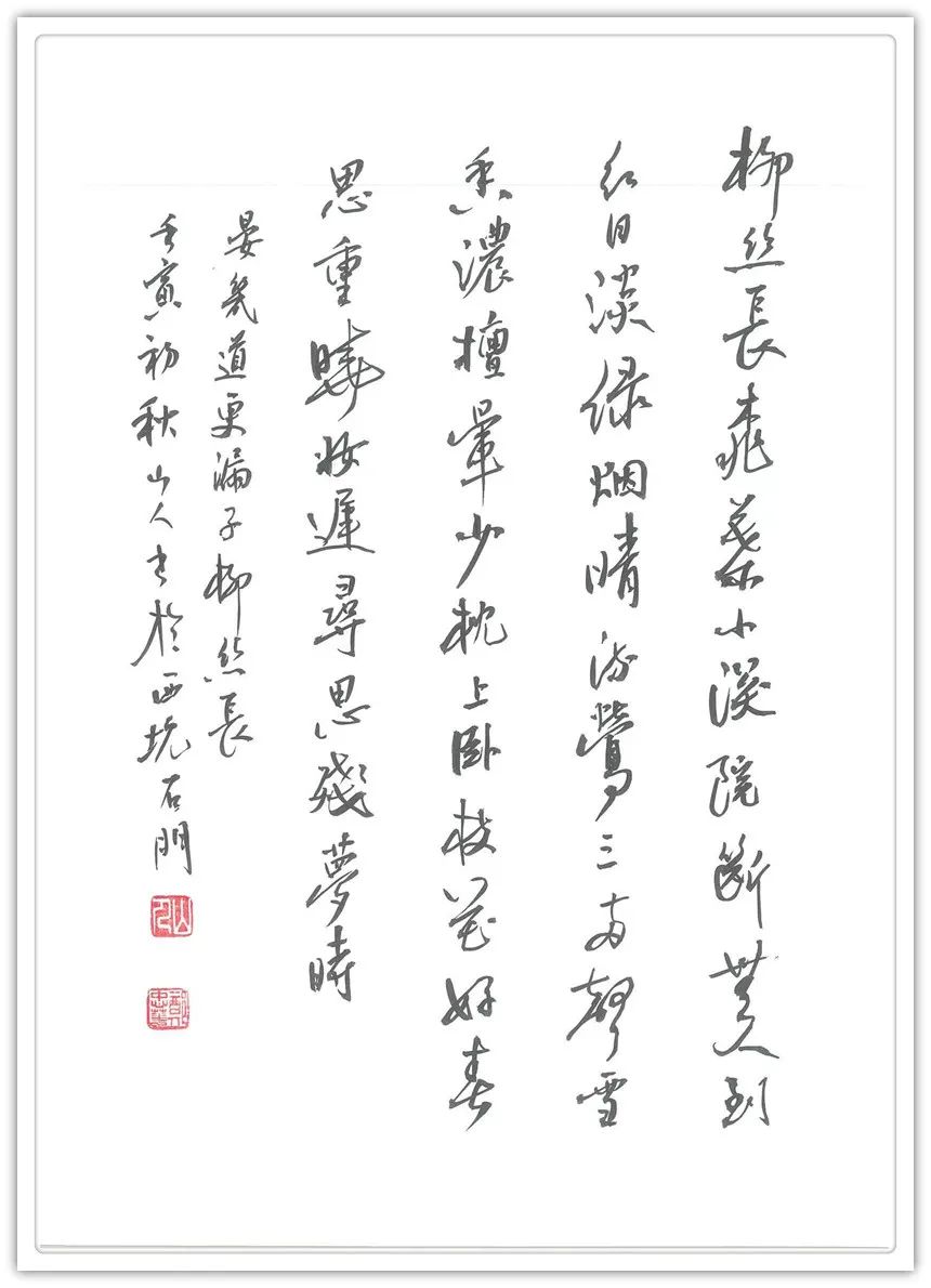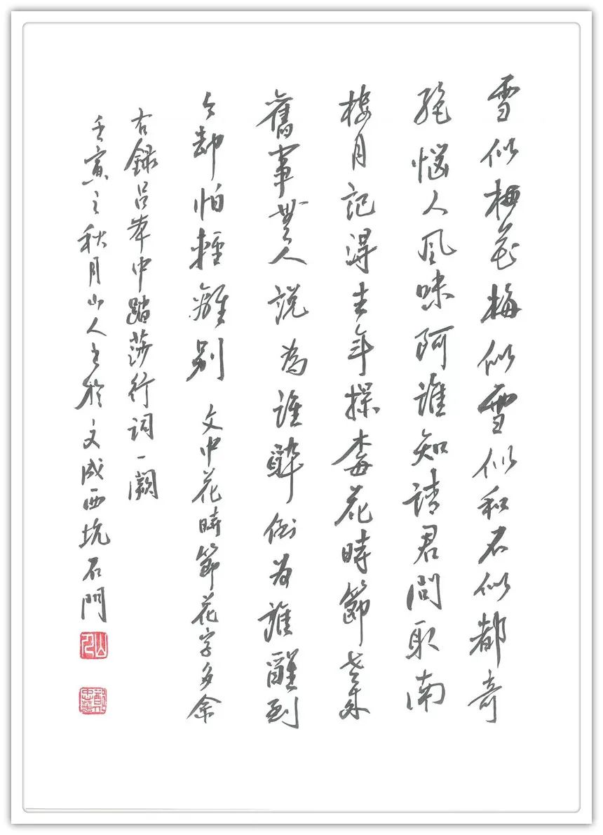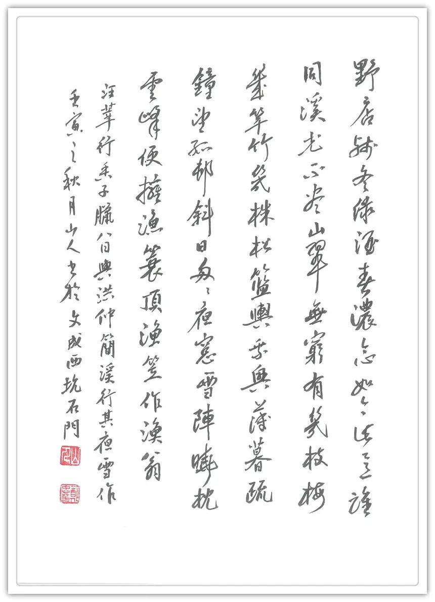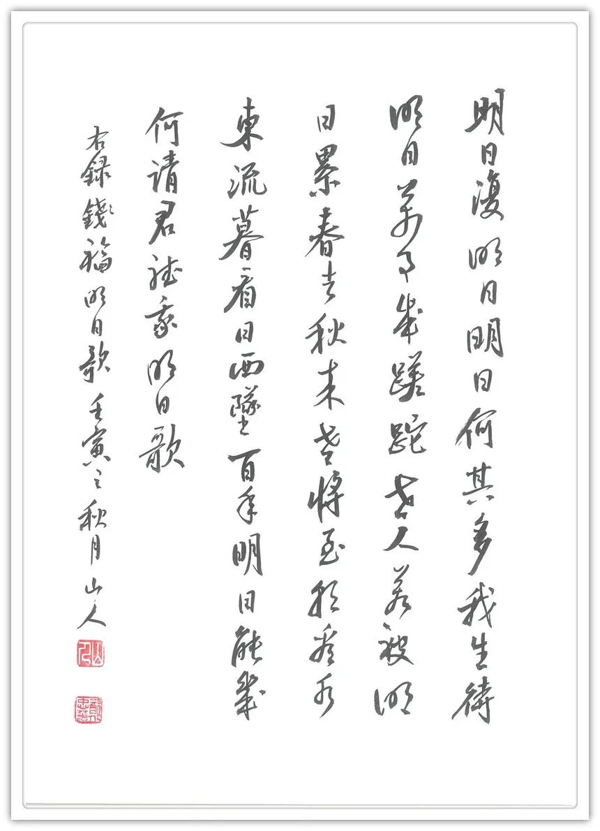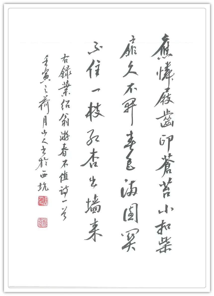 文人翰墨,天质自然。书法有法,法在碑帖。书法无法,法在心源。先生的书法是有法的正宗,亦是无法的自然。依靠文人修养的无量加持,可以激楚浪以成纹!不但笔法精湛,而且笔势多变,以力写书法,也循气写书法。笔未到气已吞,笔已离气未息,八面出锋,方圆周备,让书法极有龙跳天门,虎卧凤阙的审美冲击力。循气蓄势,势来不可止,势去不可遏,再加上墨色的丰枯变化,让书法表现出飘风骤雨惊竦竦的快利感,亦可以写出落花飞雪何茫茫的诗意感。文人书法,天质成诗意,道法自然!