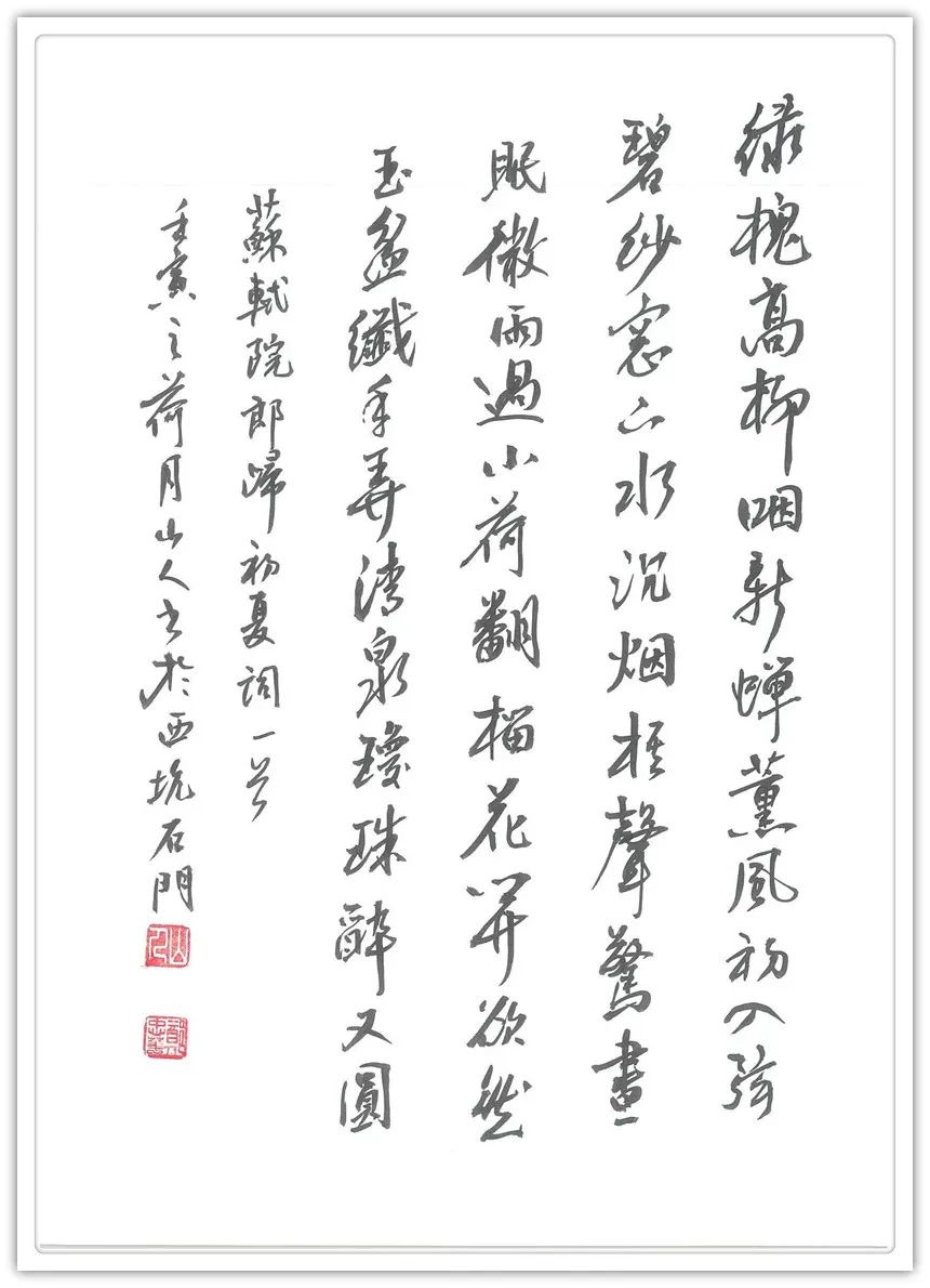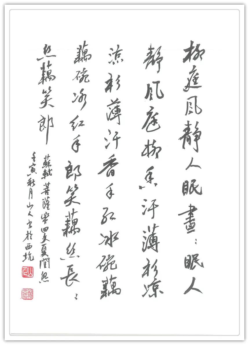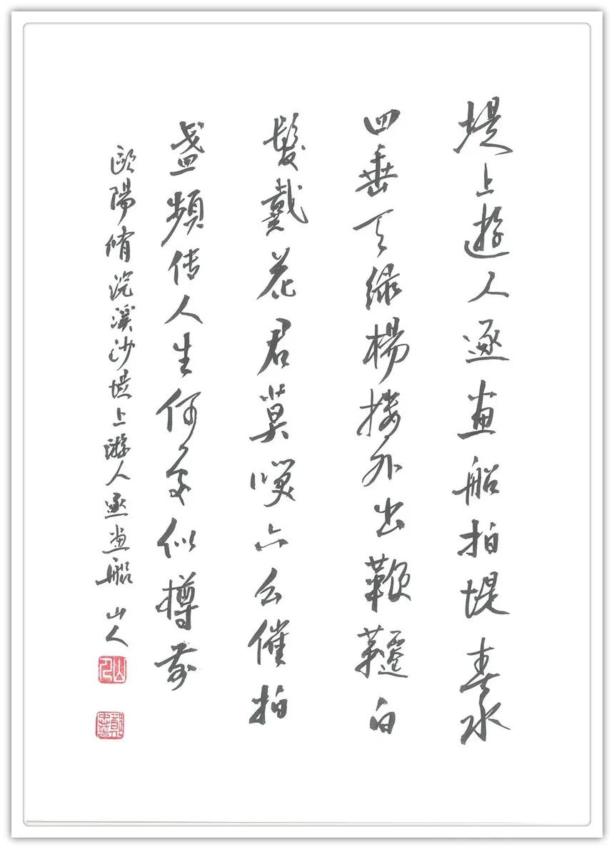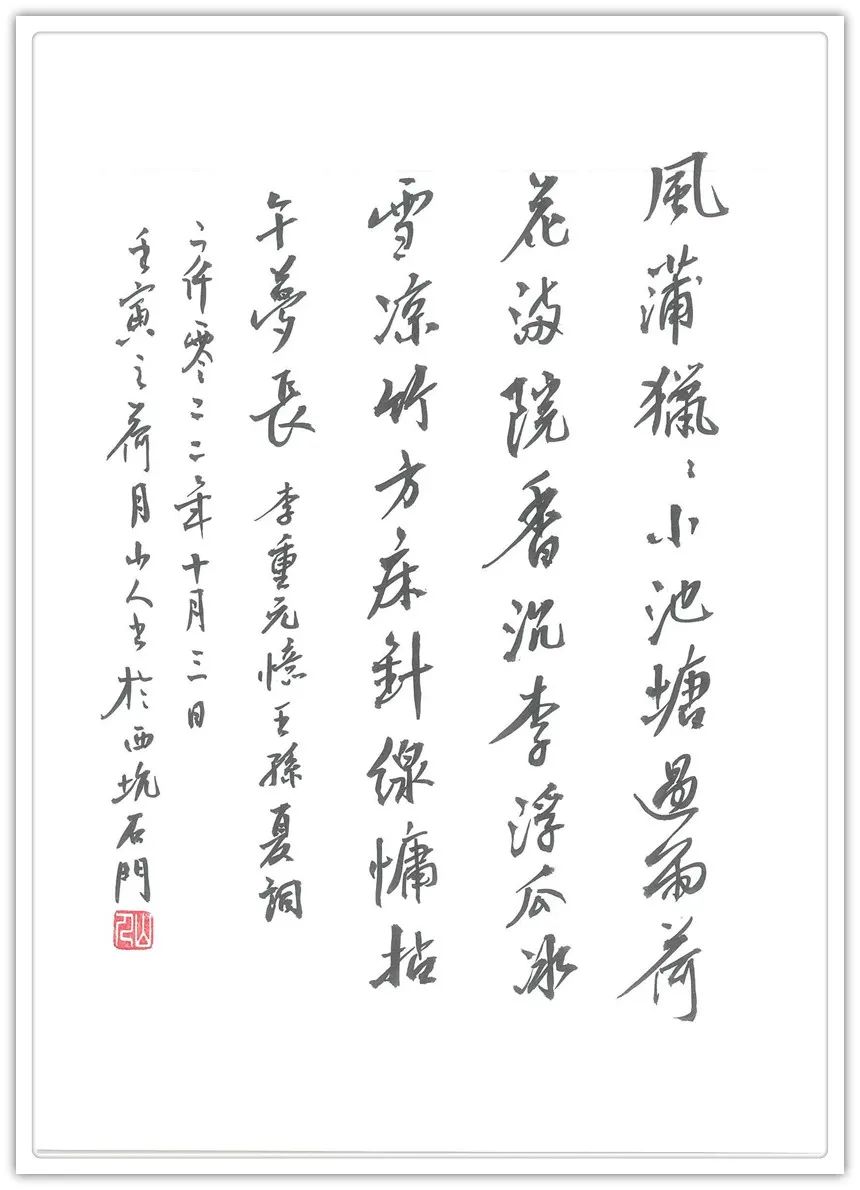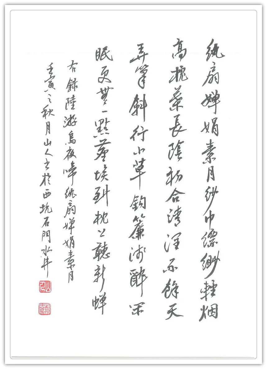 文人翰墨,天质自然。书法有法,法在碑帖。书法无法,法在心源。先生的书法是有法的正宗,亦是无法的自然。依靠文人修养的无量加持,可以激楚浪以成纹!不但笔法精湛,而且笔势多变,以力写书法,也循气写书法。笔未到气已吞,笔已离气未息,八面出锋,方圆周备,让书法极有龙跳天门,虎卧凤阙的审美冲击力。循气蓄势,势来不可止,势去不可遏,再加上墨色的丰枯变化,让书法表现出飘风骤雨惊竦竦的快利感,亦可以写出落花飞雪何茫茫的诗意感。文人书法,天质成诗意,道法自然!