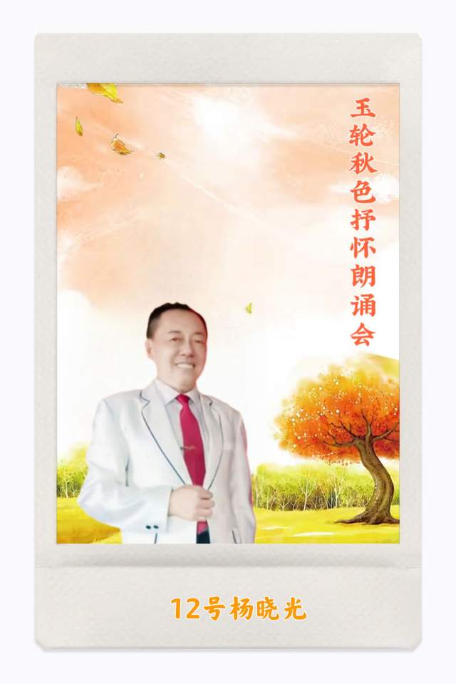 尊敬的雪石先生,尊敬的各位诵友们,大家晚上好。我是本场诗会的总导演刘凤翔,欢迎大家聆听玉轮秋色抒怀朗诵会。