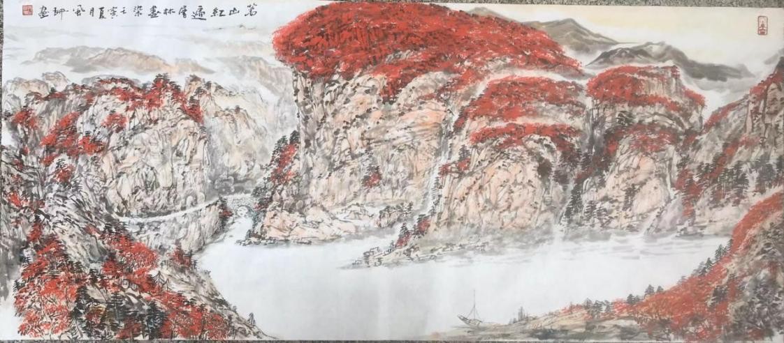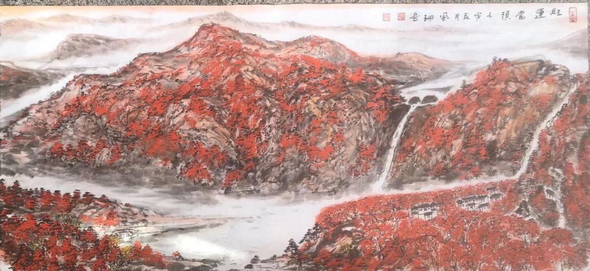 作品讲述:此画带有强烈的感情色彩,表达了一种爱国情感。加上画家本身对山川的内心感受,通过对山川的系统刻画,营造出气势恢宏、壮烈山河的红色山水之美。