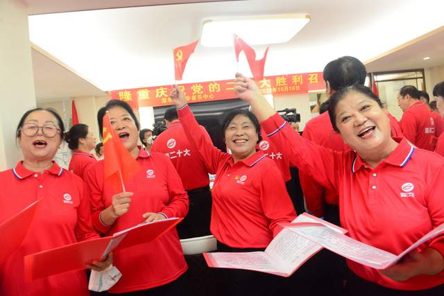 10月16日上午10点,中国共产党第二十次全国代表大会在北京隆重开幕。为迎接党的二十大胜利召开,一场超燃的“喜迎二十大,礼赞新时代”主题活动在福田区长福花园激情唱响。深圳市文化音乐中心主办的喜迎二十大主题活动在莲花社区文华学堂举行,现场社区党员、退伍老兵代表、莲花一二三村的退休职工代表坐在一起,感受团结奋进的时代脉搏,大家跟随着直播画面,起立唱起国歌,认真收看开幕会现场直播。莲花一村二村三村社区代表群众齐唱红歌颂党恩,现场吸引社区居民积极参加。