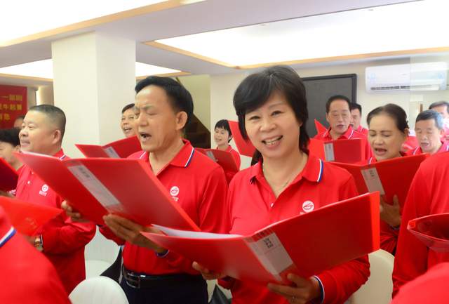 社区居民激情唱响《鲜红的党旗 鲜红的国旗》