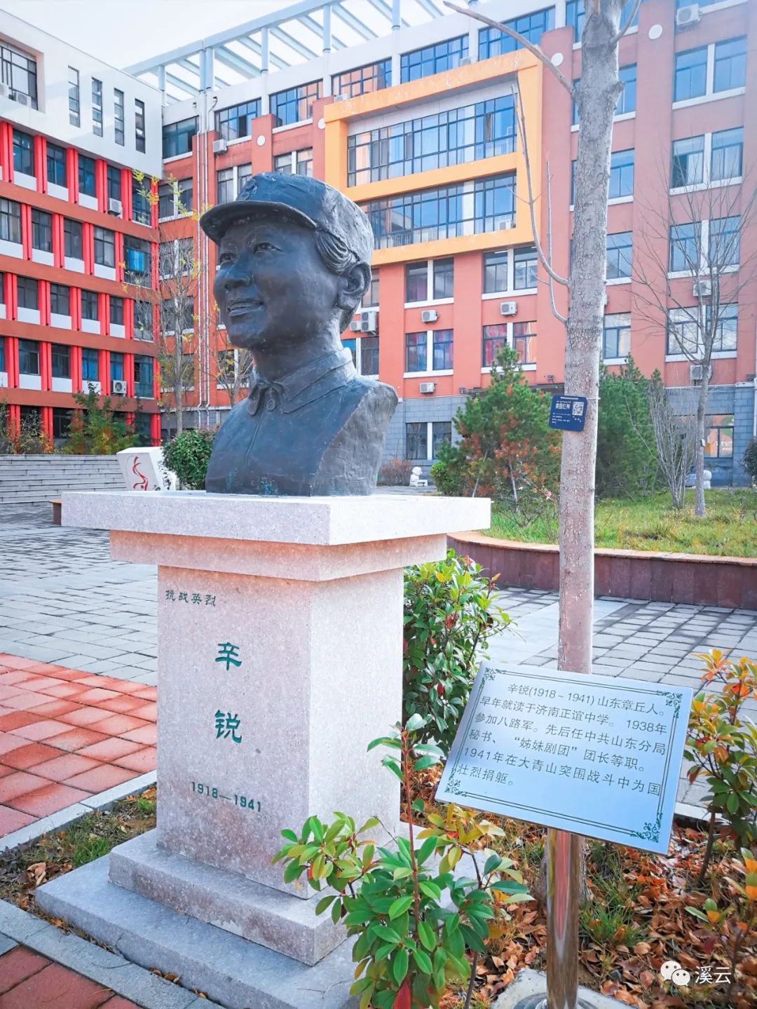 济南艺术中学少女时代辛锐就读的正谊中学辛锐塑像