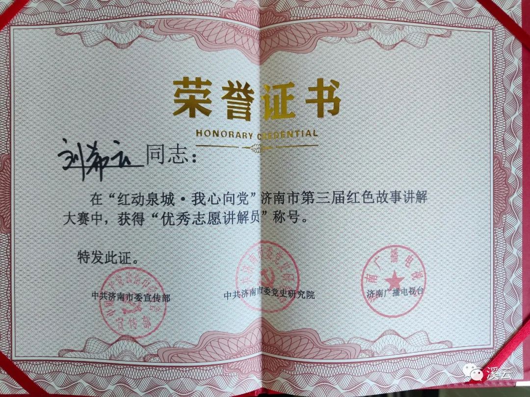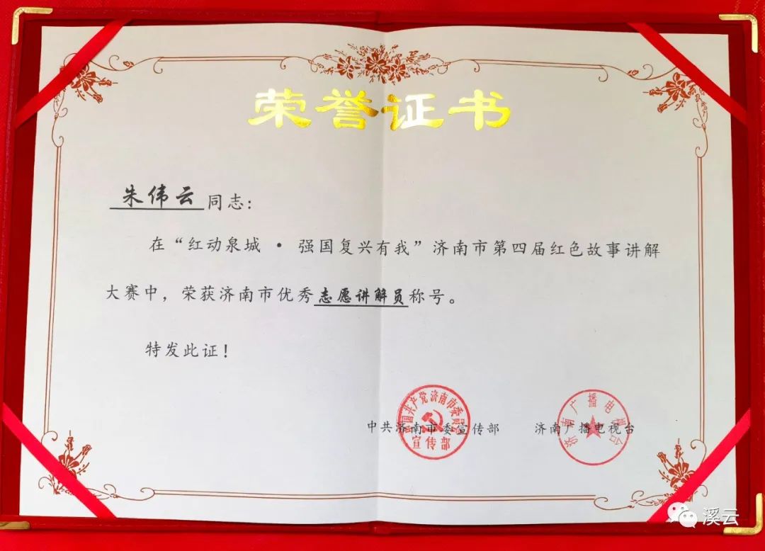朱伟云在“红动泉城·强国复兴有我”济南市第四届红色故事讲解大赛获济南市优秀志愿讲解员”202210