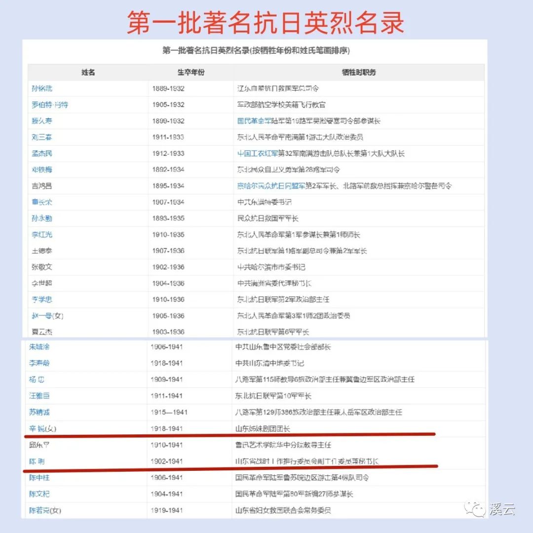 第一批著名抗日英烈名录