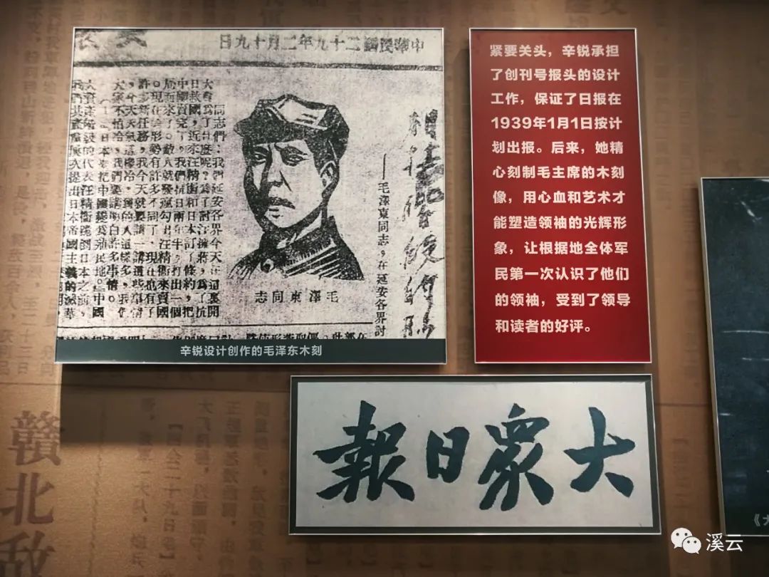 1938年底,辛锐参加山东八路军机关报《大众日报》的创刊工作,“创刊号”报头上的毛泽东木刻头像和刊头“大众日报”四个字就出自辛锐之手。她用艺术和心血塑造的毛泽东像,让山东抗日根据地军民第一次看到了领袖的光辉形象。她是“大众日报”的重要创始人。