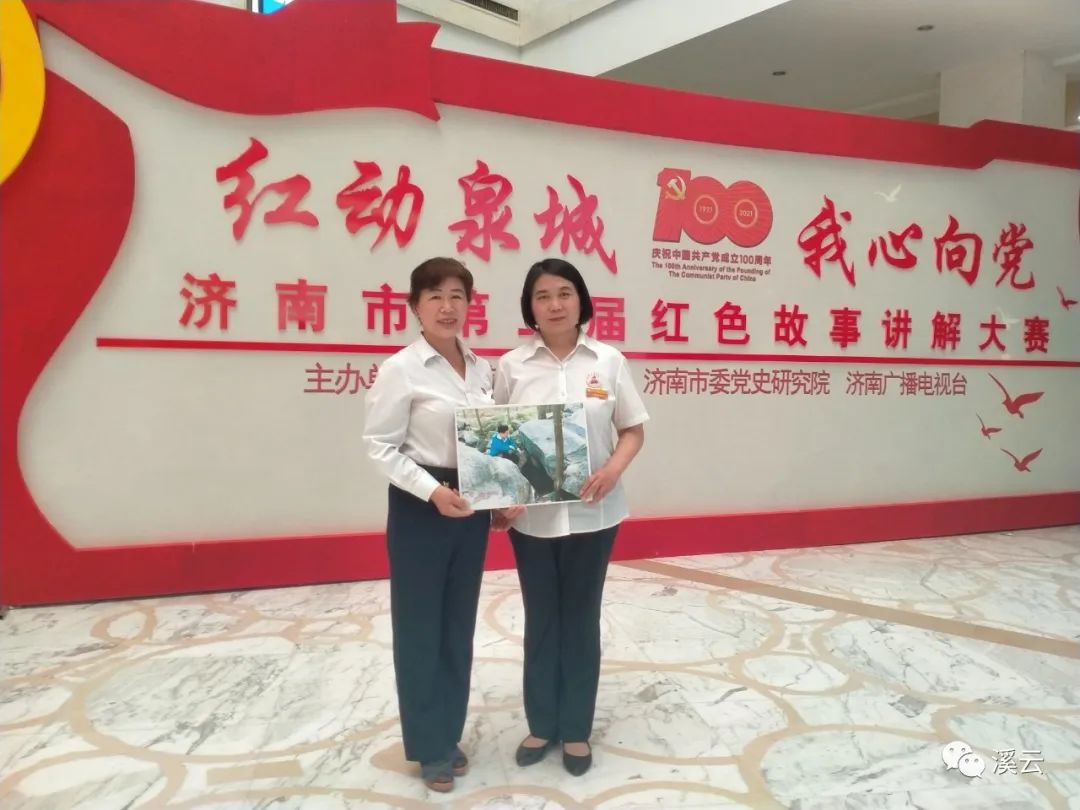 朱伟云和刘希云老师同声讲辛锐,同时参加“红动泉城·我心向党”济南市第三届红色故事讲解大赛合影202106