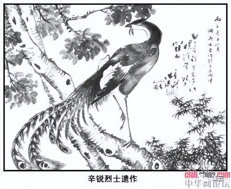 辛锐小时候在百花洲畔画的“工笔淡彩花鸟画”复印件现在济南章丘辛锐纪念馆展出。