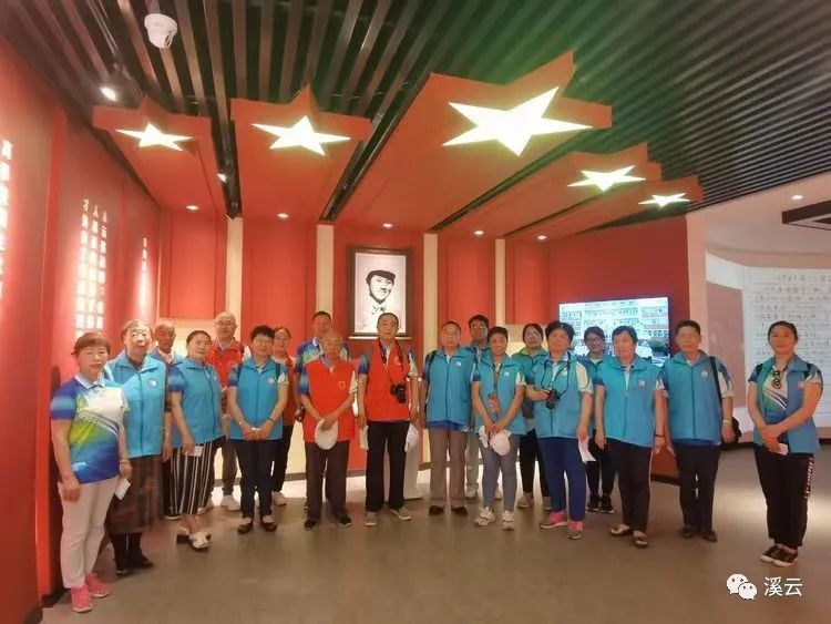 老济南记忆馆讲解员参观章丘辛锐纪念馆 辛锐像下面着红色志愿服的是队长张志毅老师;右二是元老刘树林老师 80高寿的帅小伙;左一是本文作者朱伟云 202106
