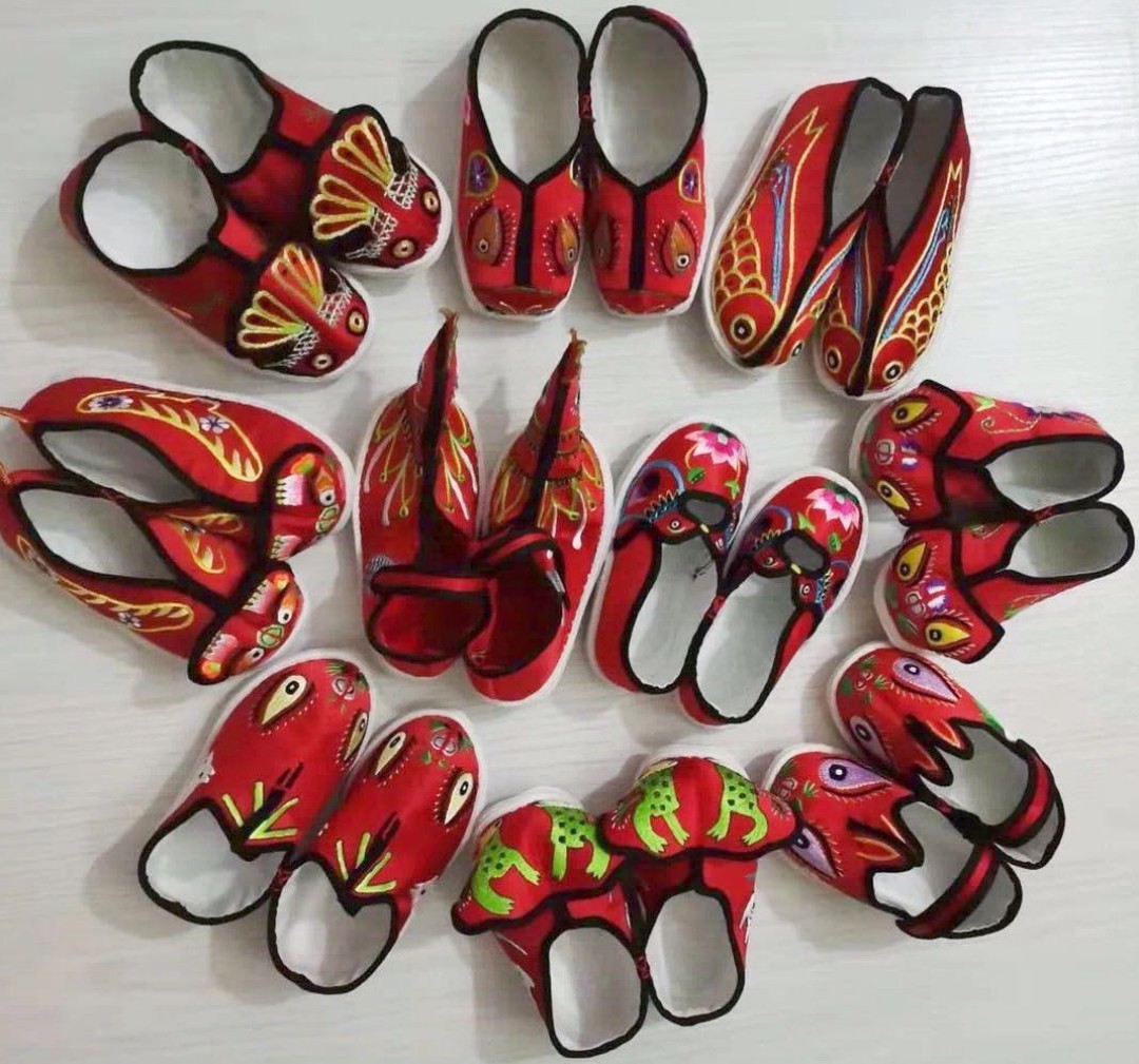 古往今来,“红安绣活”是当地人民馈赠亲朋好友的礼品,尤其是送给心仪之人的信物。作品大多应用于鞋垫、布鞋、童帽、枕面、枕套、布兜、衣面、衣边、门帘、窗帘、帐筵、桌围、椅褡等诸多生活日用纺织品的美化,其中尤以“红安绣花鞋垫”著称于世。