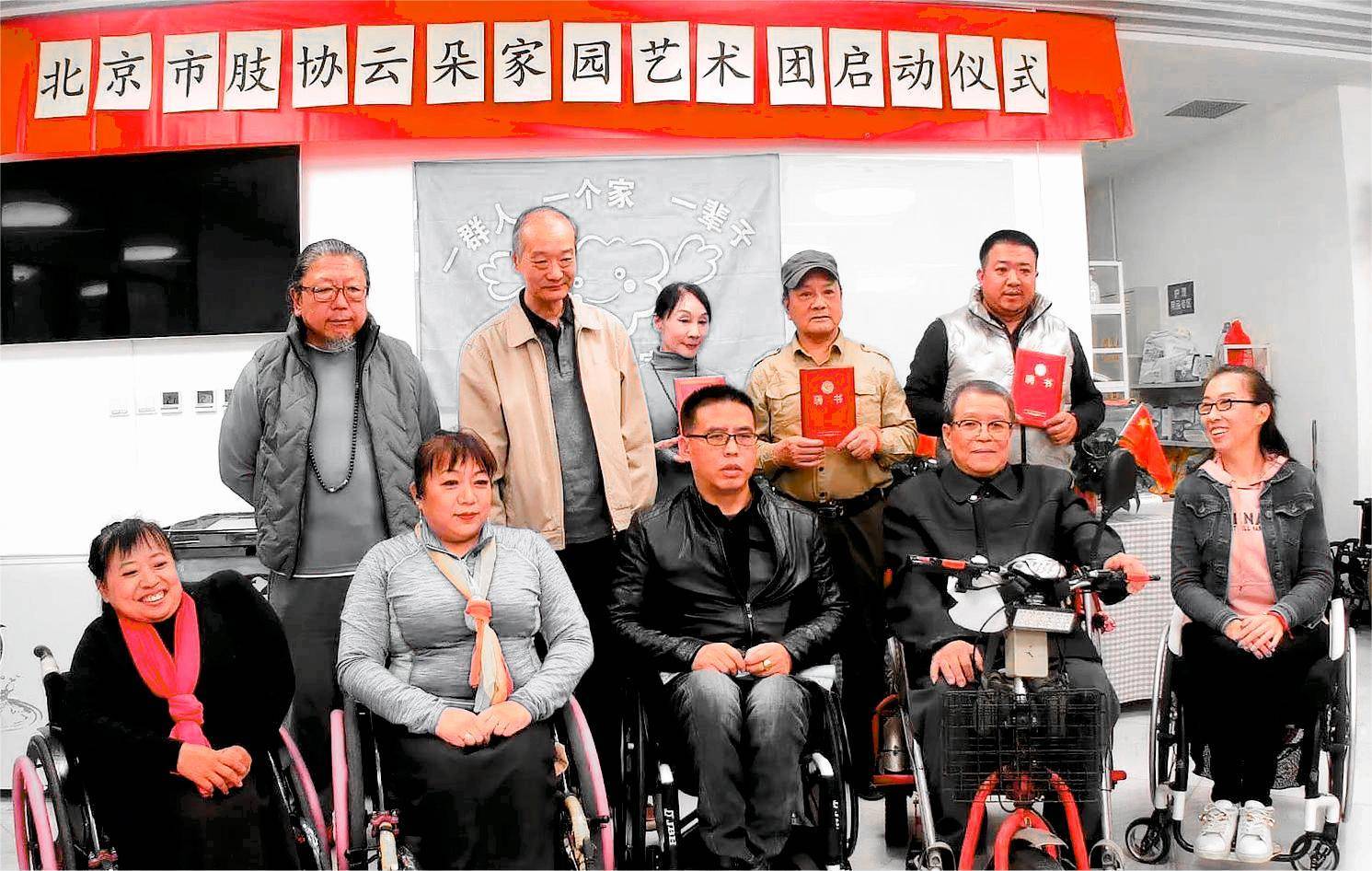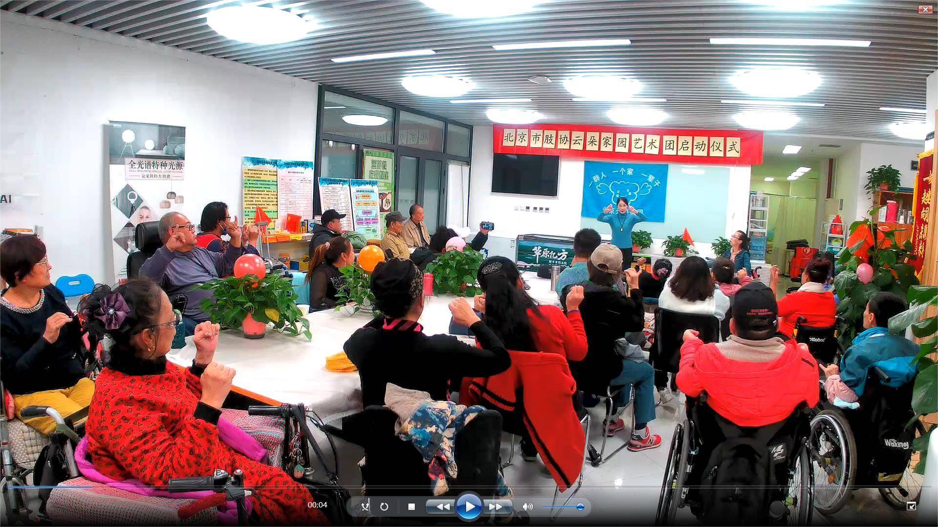 2022年10月30日,在北京市肢协云朵家园位于金鱼池社区温馨家园的工作站,多位著名艺术家一起公益助力,庆祝“云朵艺术团”的成立。到场的嘉宾有:舞蹈教育家马赤红、歌唱家张震、诗人朗诵家孙月龙(雪石)、公益人张伟兵、全站(北京)刘祝总经理,赵京生主任、司德林顾问代表云朵家园所有的伙伴们向到来的艺术家、公益人、助残企业表达热烈欢迎。